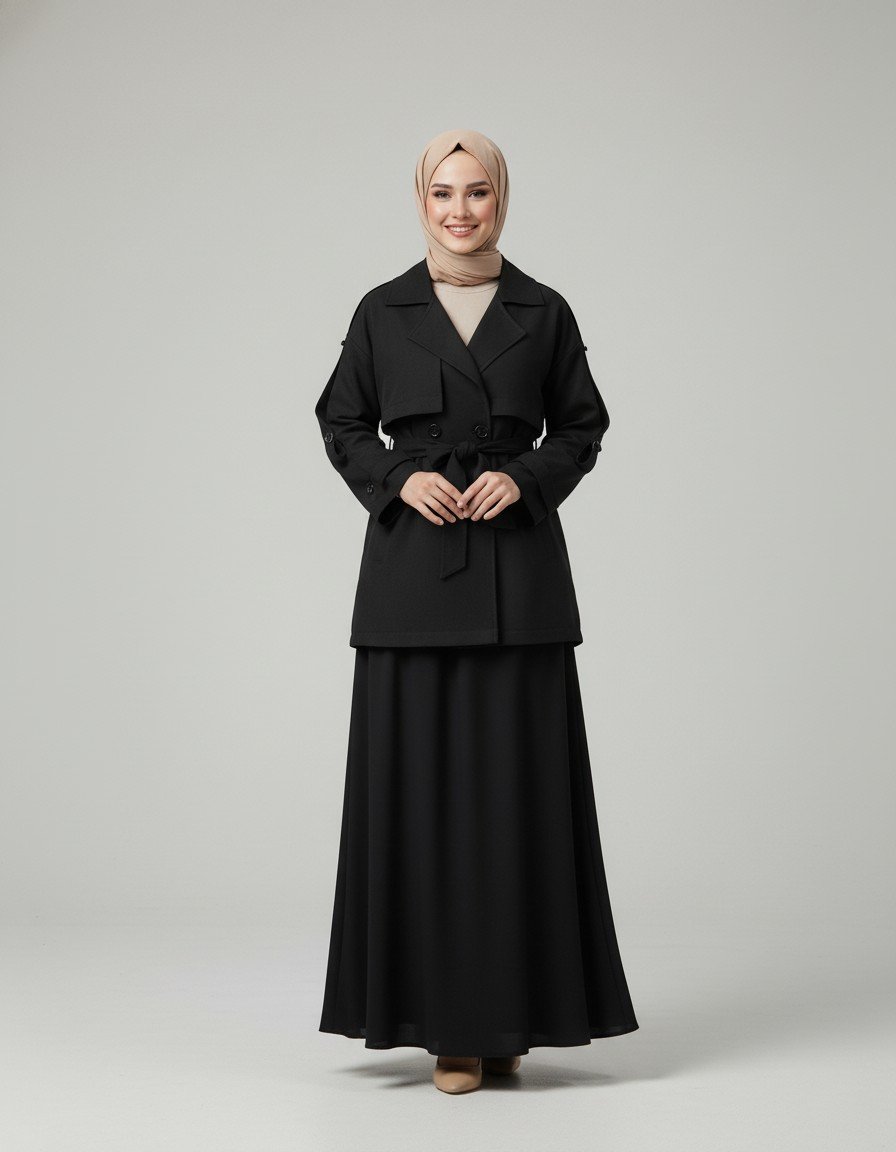 Aline Kapaklı Kol Ucu ve Omuz Kemer Detaylı Kısa Trenç-EN2199 Siyah