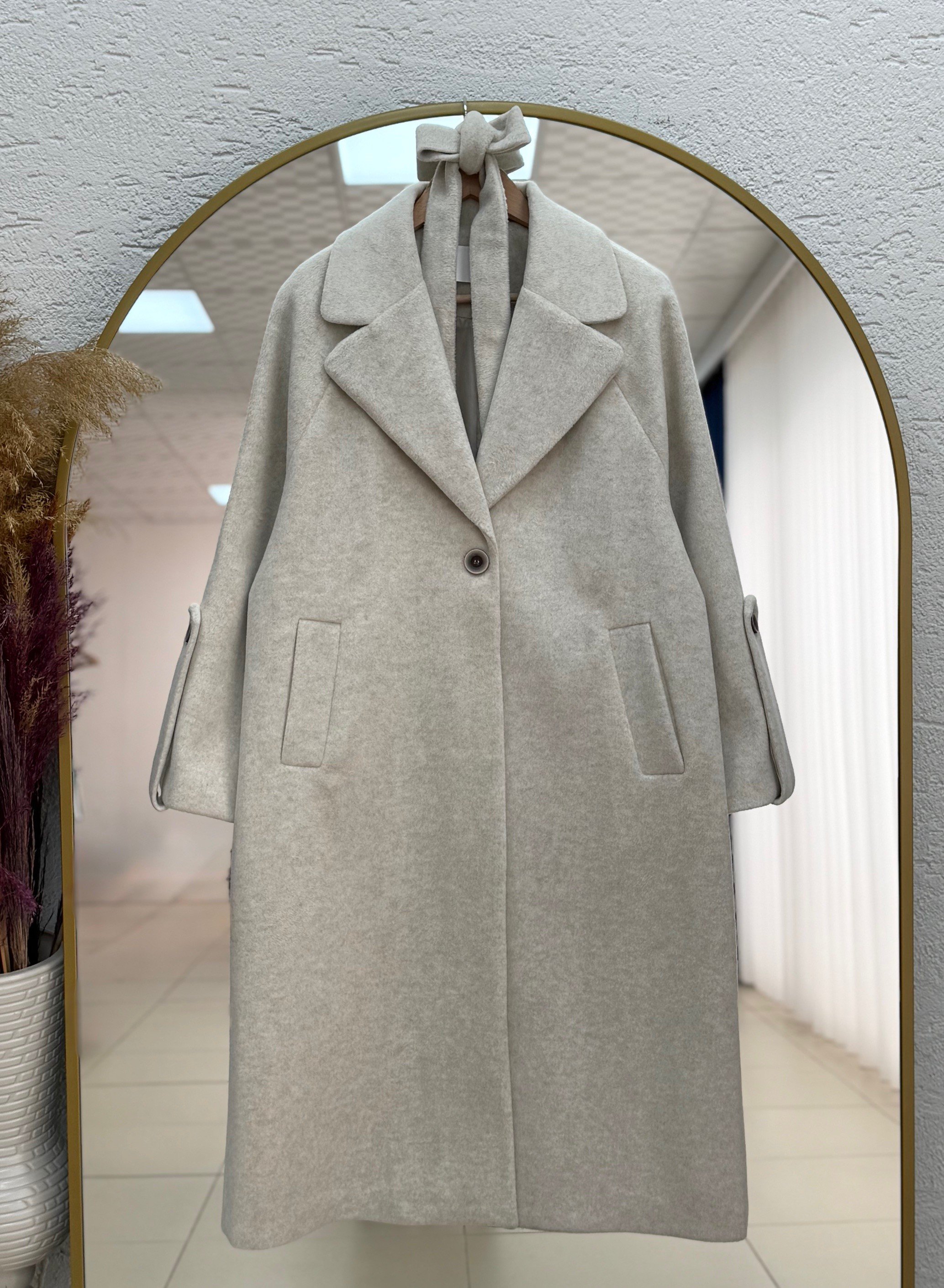 Alison Tek Düğmeli Kolu Kemer Detaylı Kaban-ÜN1055 Taş