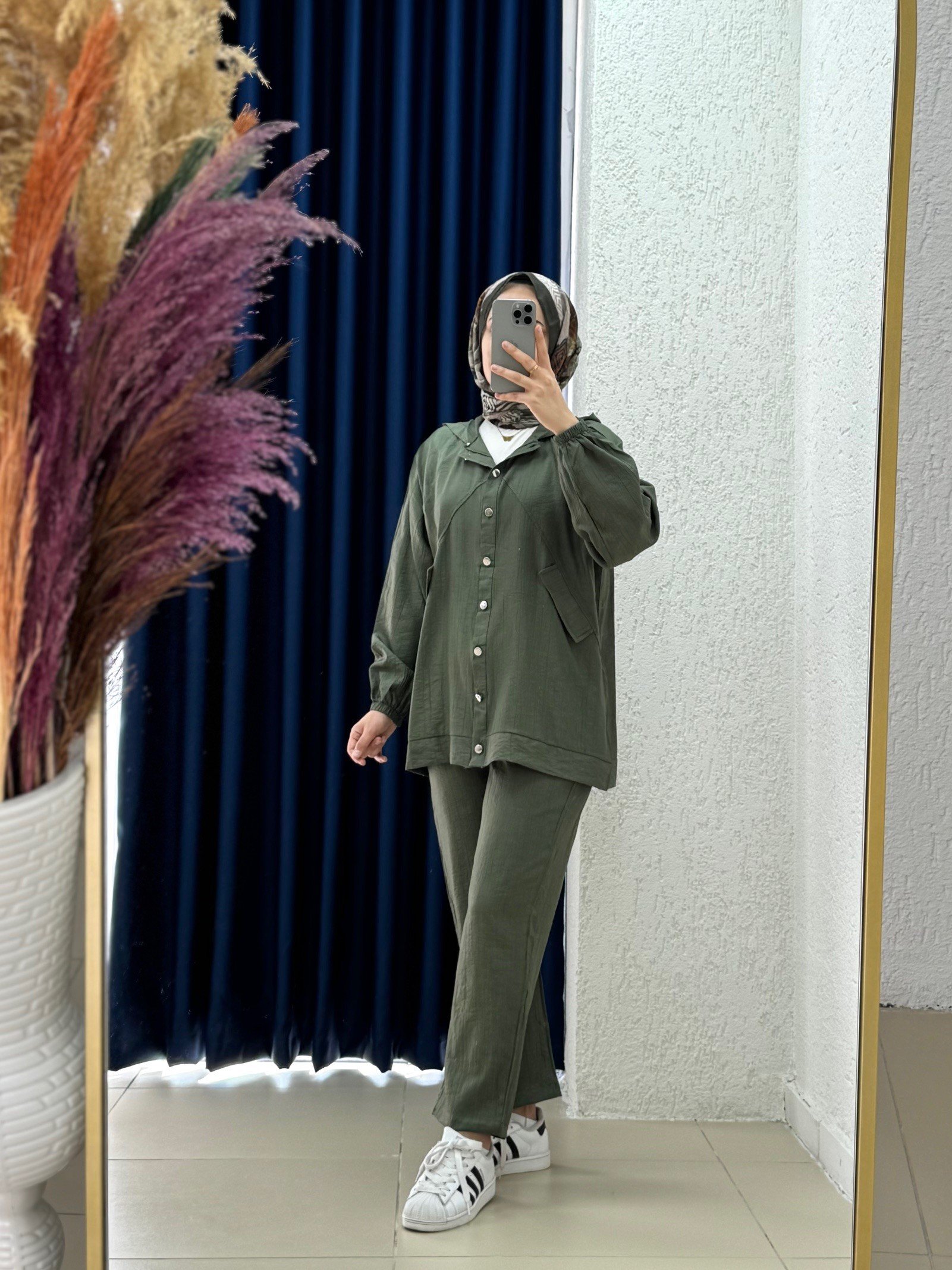 Alkım Çilek Kapşonlu Cep Kapaklı Takım-NA3387 Haki