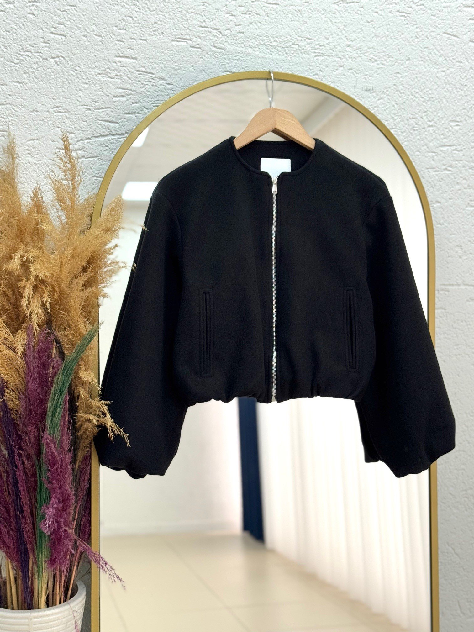 Arioria Çift Cepli Altı Lastikli Kısa Kaşe Ceket-KT1800 Siyah