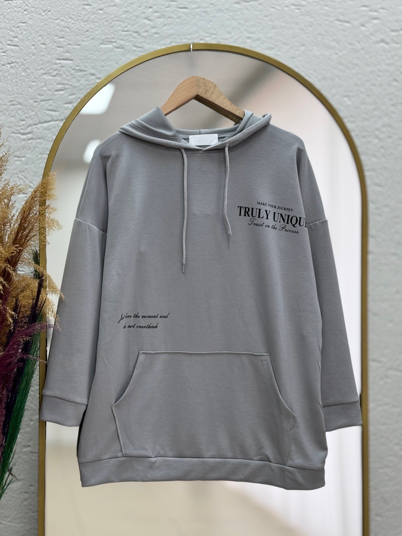 Arzu Kanguru Cep Baskılı Tunik-NA764 Gri