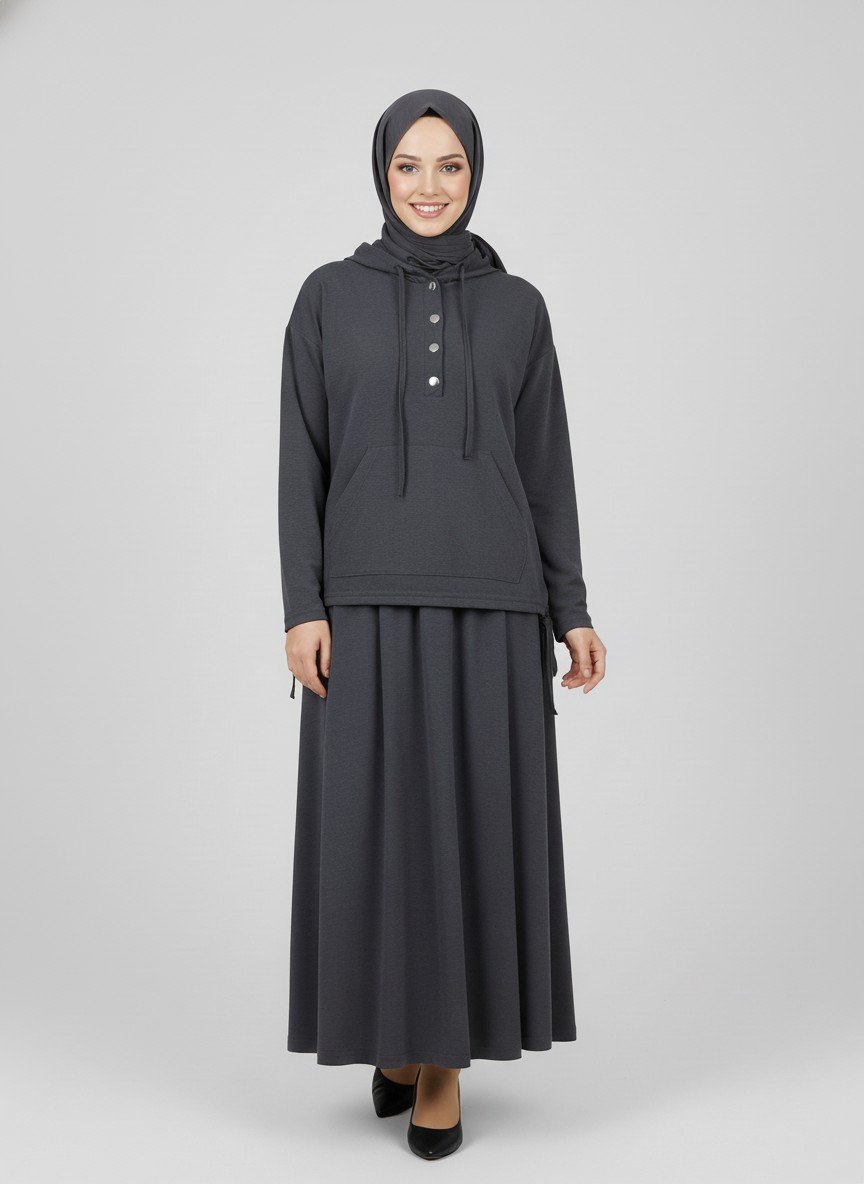 Barina Pat Detaylı Kangru Cepli Etekli Takım-AS084 Antrasit