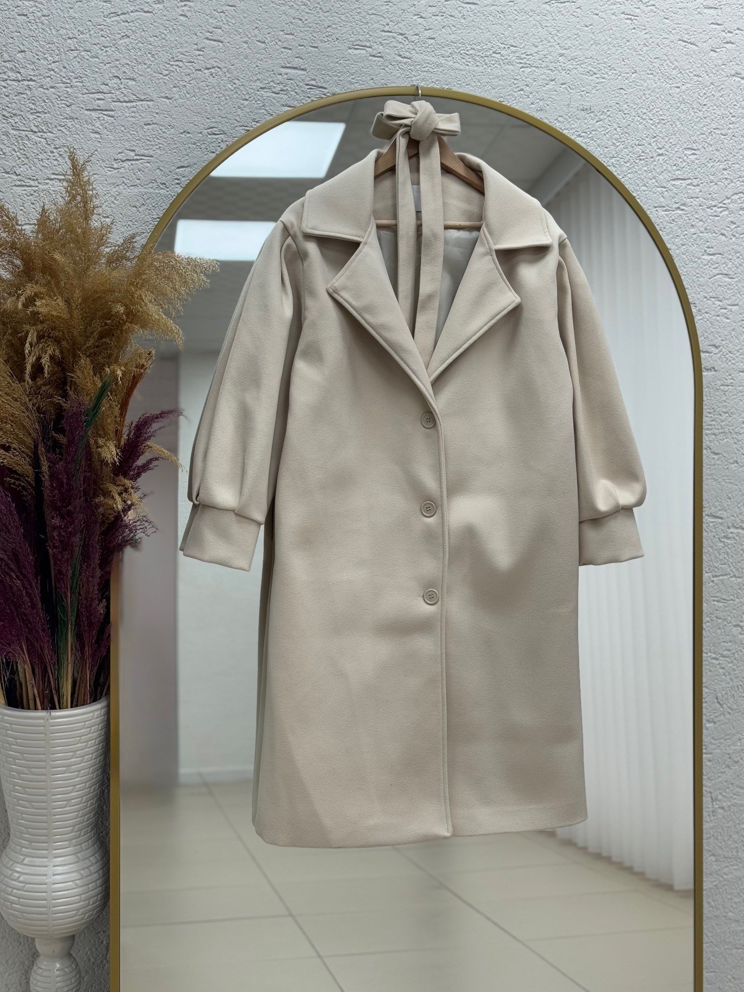 Basima Balon Kol Astarlı Düğmeli Kaşe Kaban-EK4114 Taş