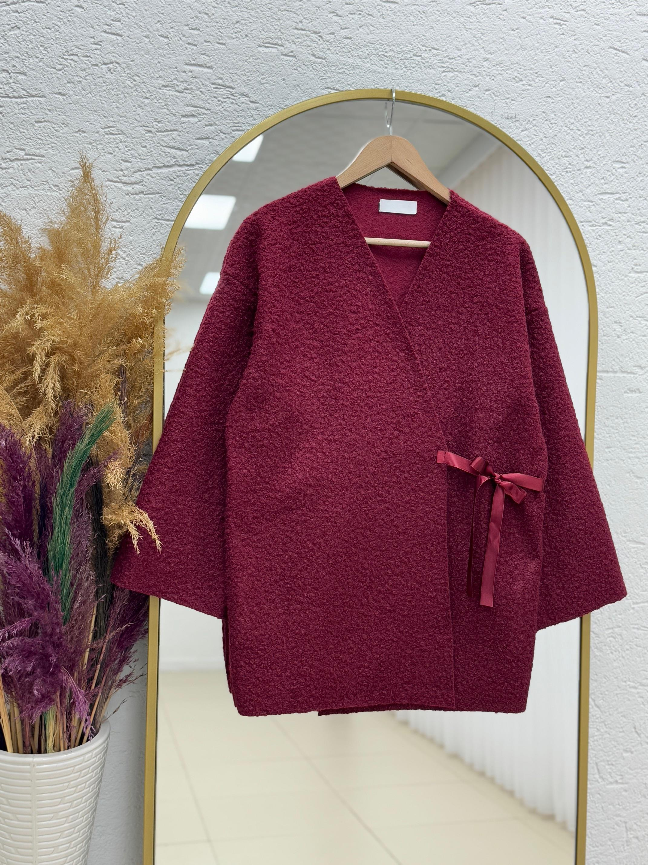 Begüm Bağlamalı Buklet Ceket-FS1237 Bordo