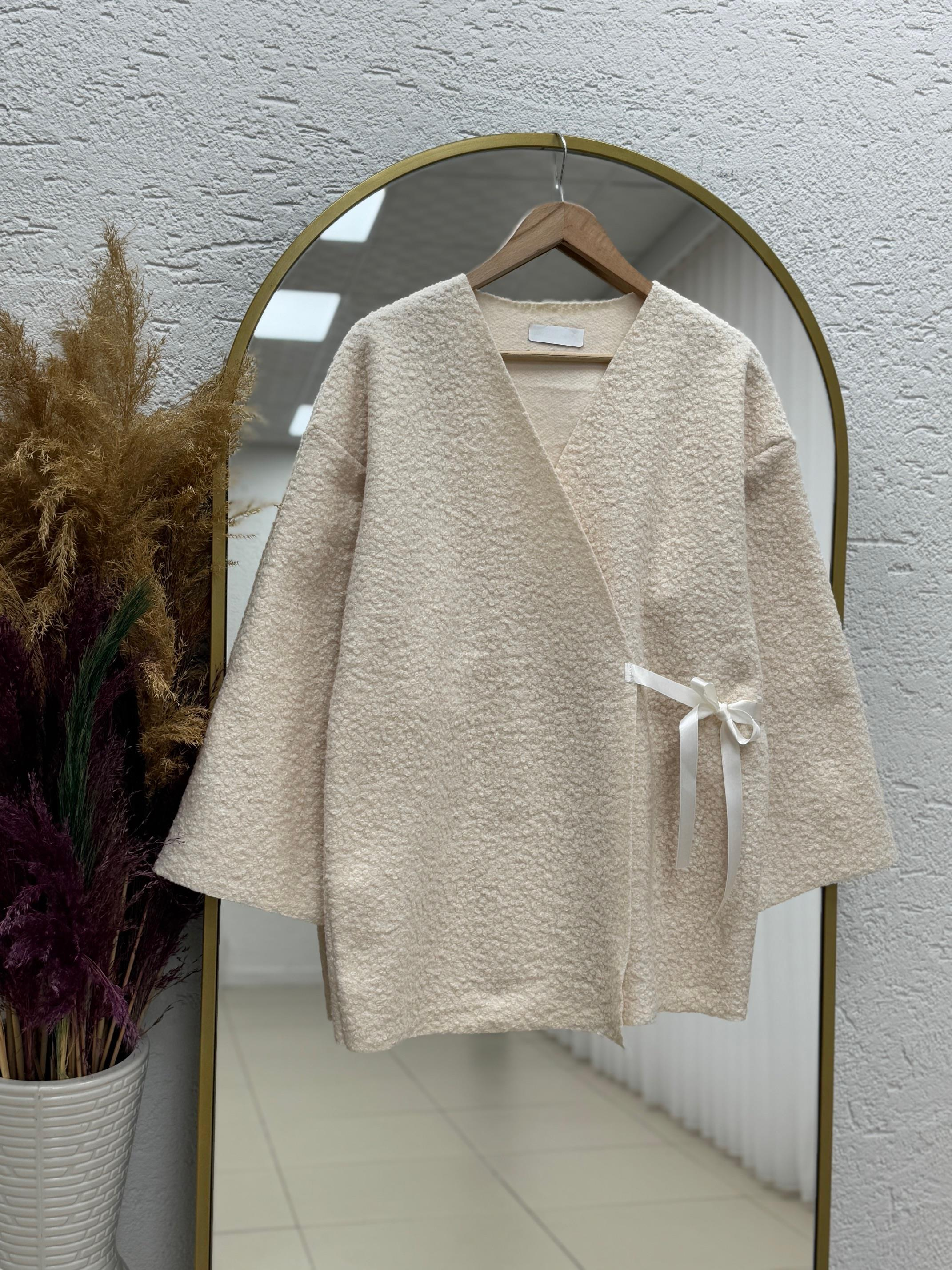 Begüm Bağlamalı Buklet Ceket-FS1237 Taş