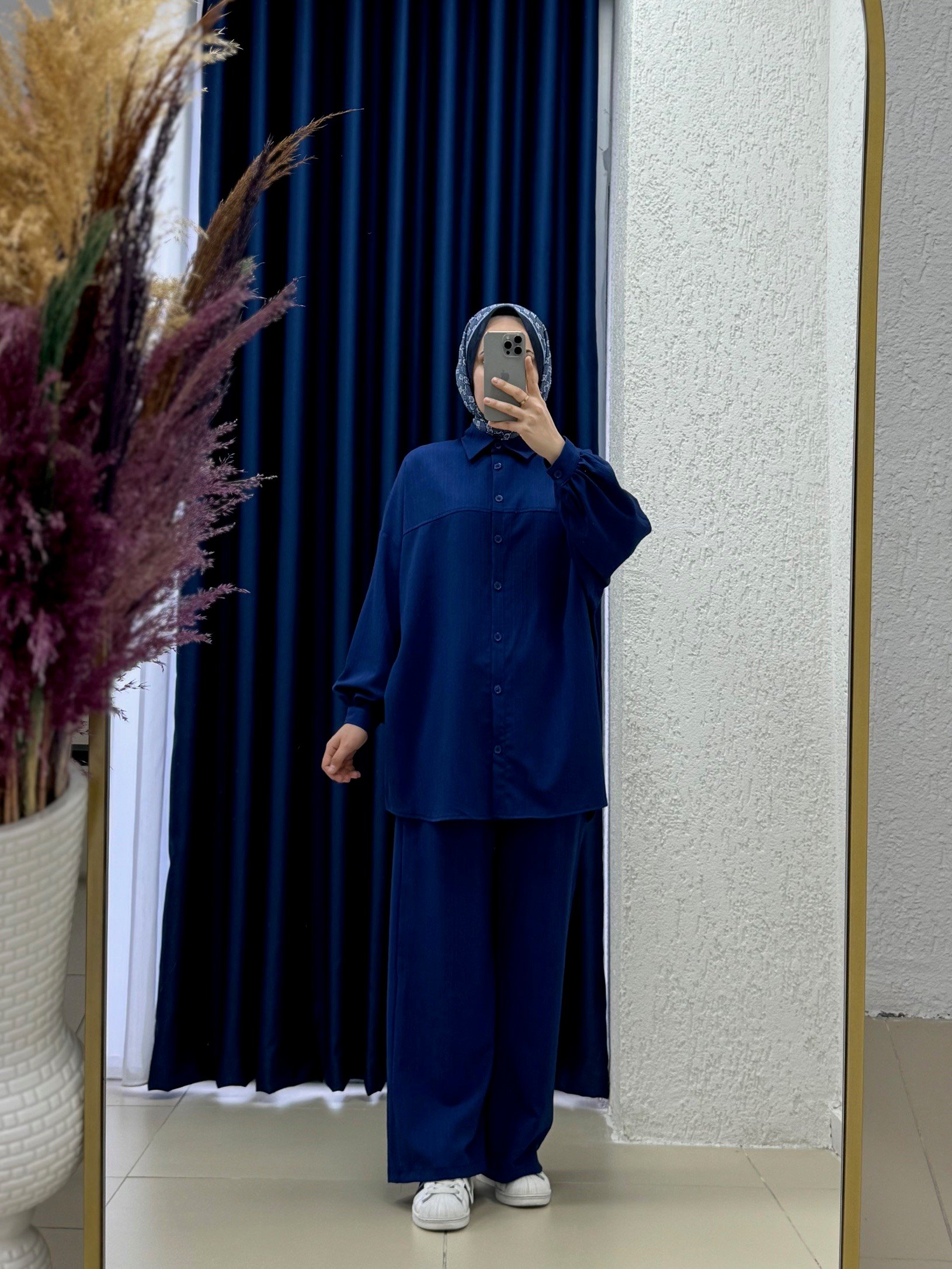 Behin Gömlek Önü Pervazlı Biyelii Dubai Pantolonlu Takım-EK-Z-480 Lacivert