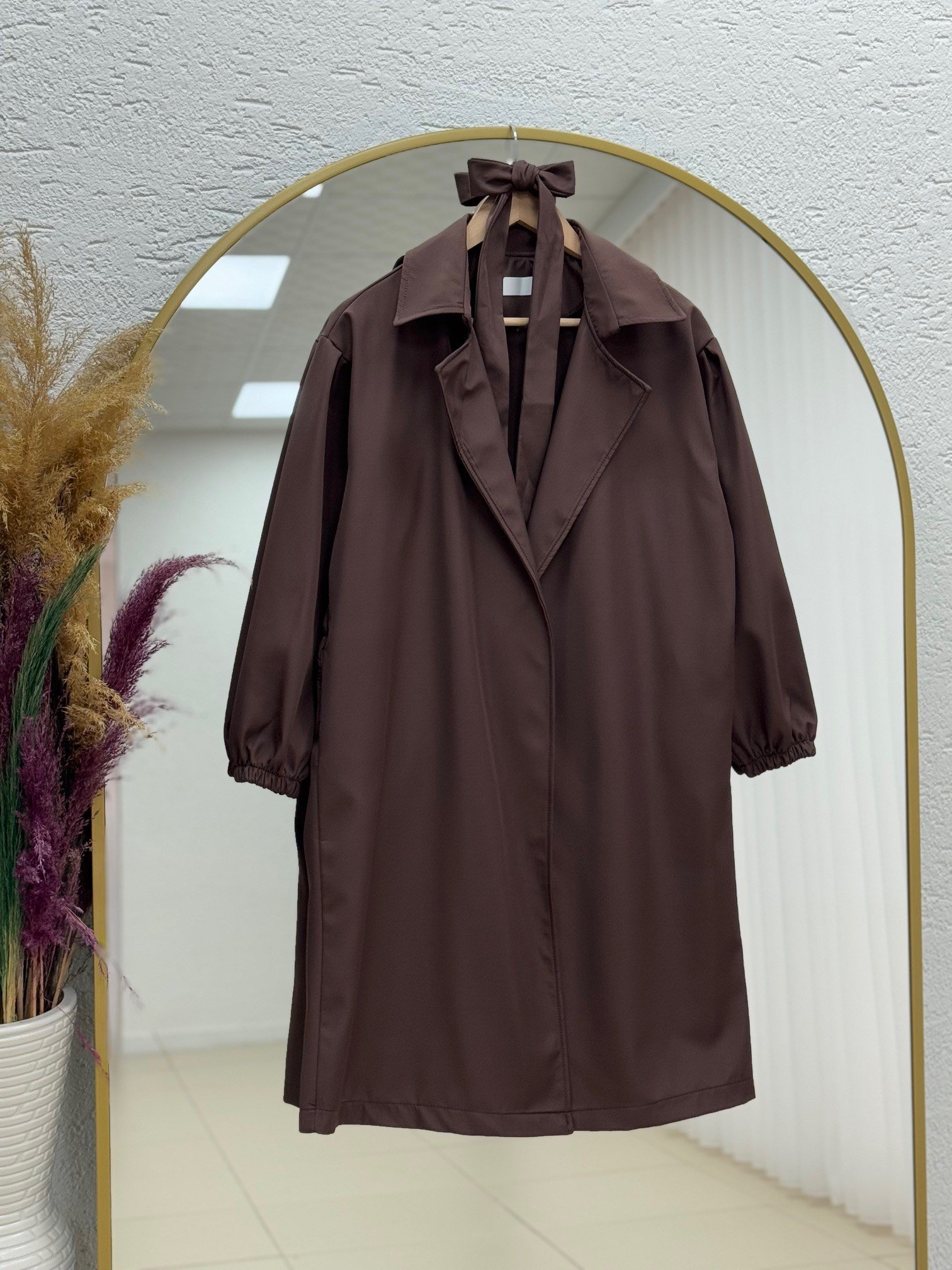 Roya Belden Bağlamalı Balon Kol Trenç-KN7006 Kahve