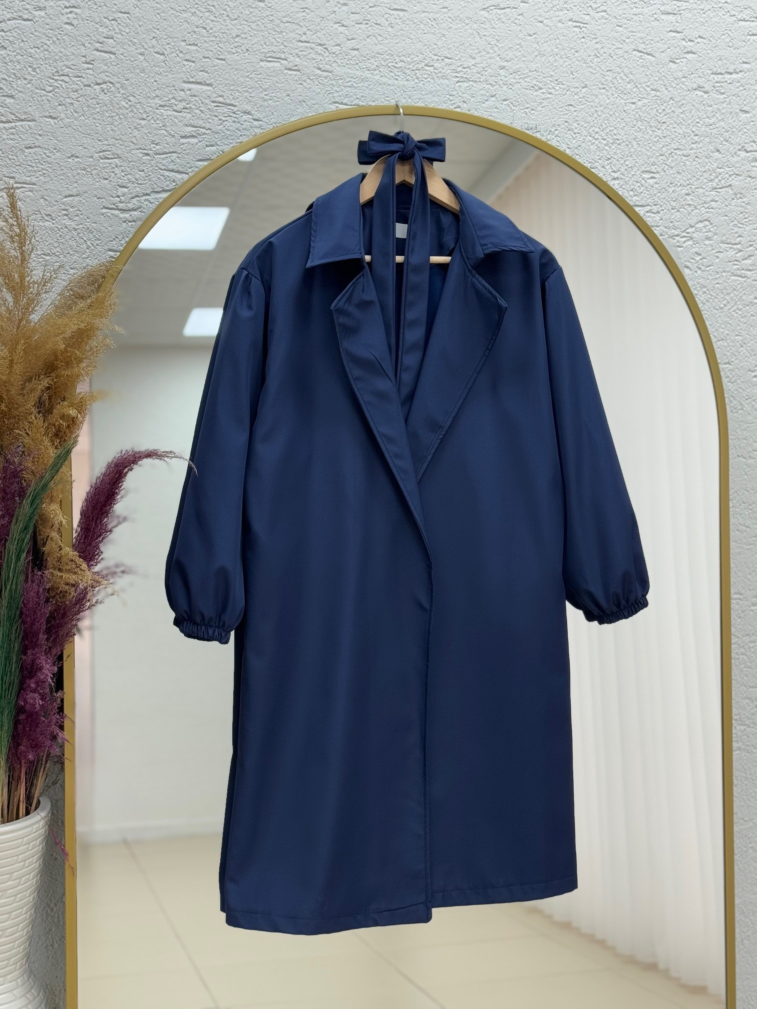 Roya Belden Bağlamalı Balon Kol Trenç-KN7006 Lacivert