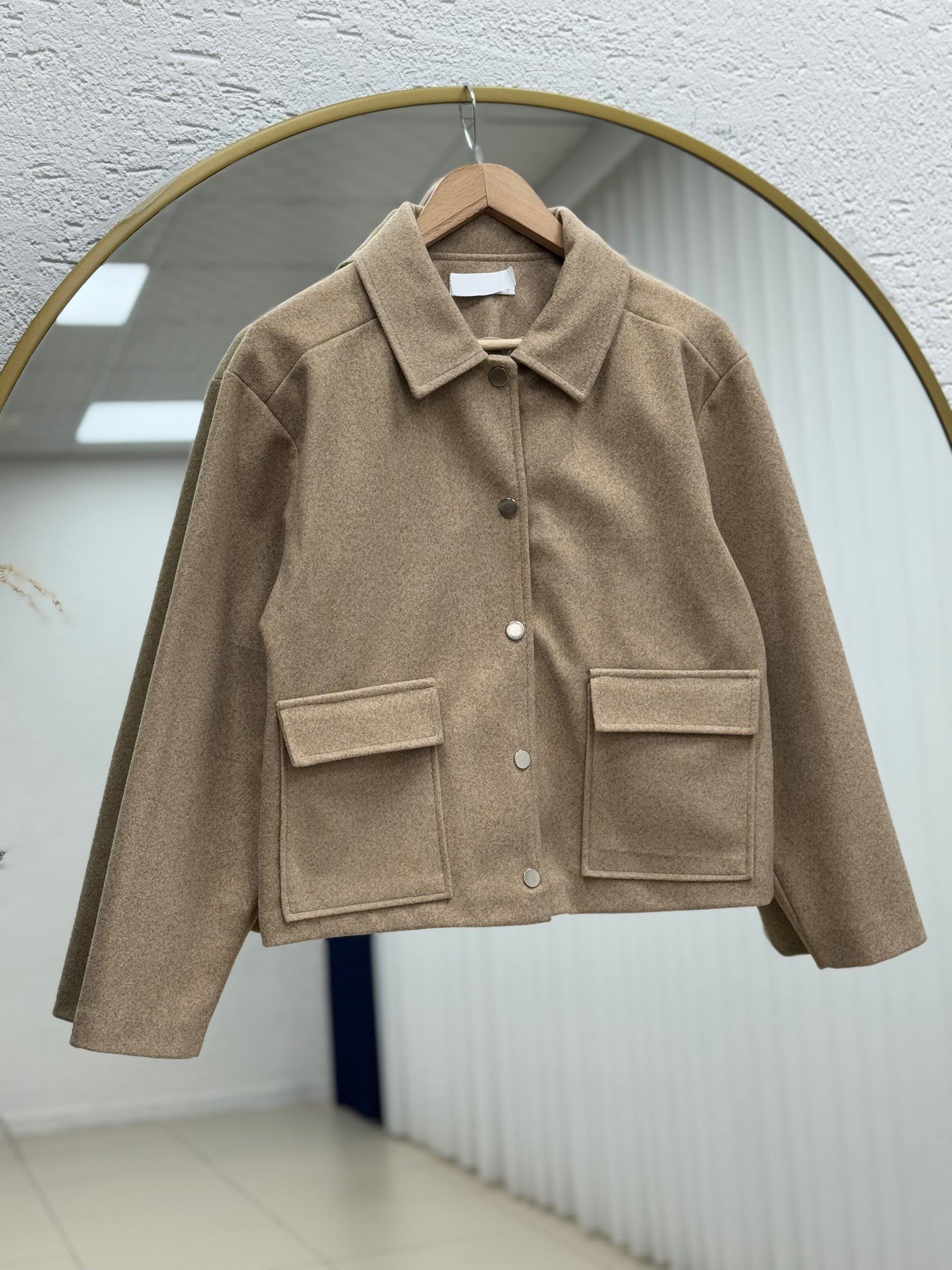 Belita Metal Düğmeli Kısa Kaşe Ceket-EN2170 Vizon