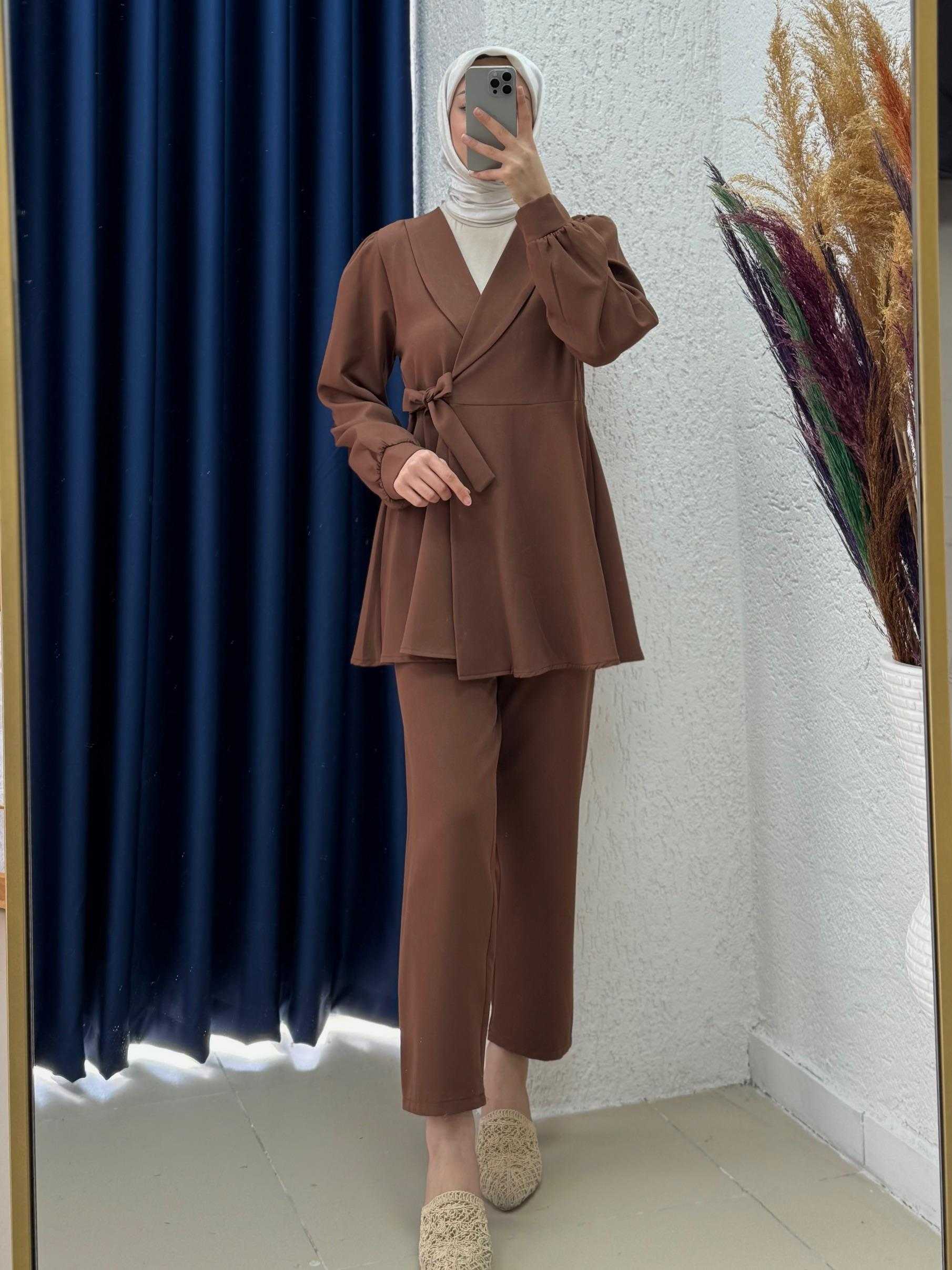 Bellinzona Kuşak Detaylı Ceketli Takım-AS00466 Kahve