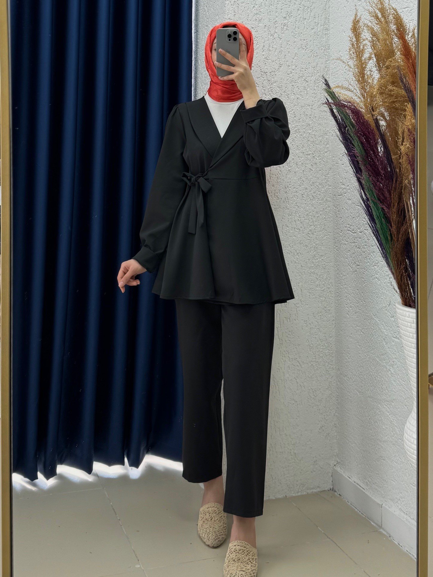 Bellinzona Kuşak Detaylı Ceketli Takım-AS00466 Siyah