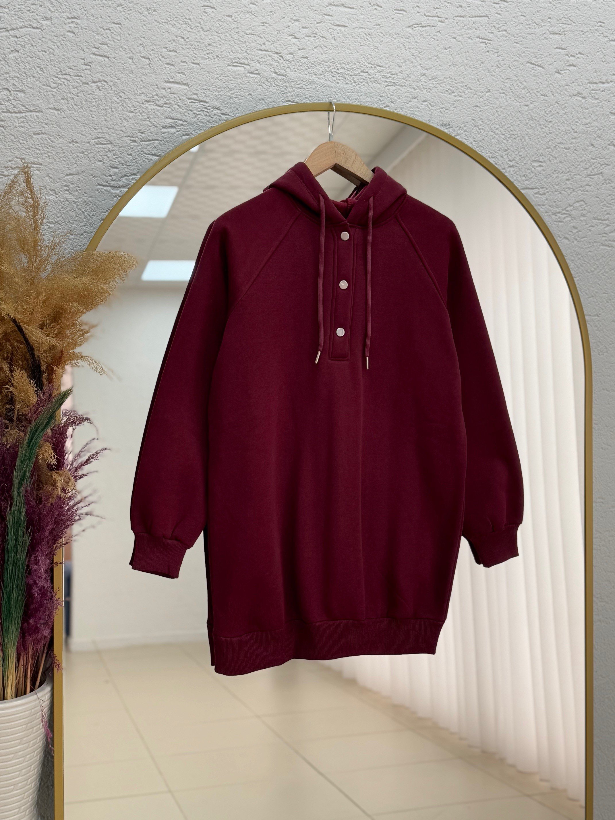 Bemedra Çıtçıtlı Omuzu Dikiş Detaylı Kapşonlu Üç İp Sweat-ZN6685 Bordo