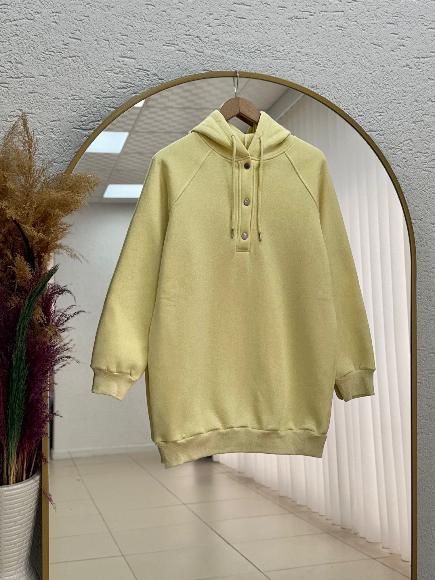 Bemedra Çıtçıtlı Omuzu Dikiş Detaylı Kapşonlu Üç İp Sweat-ZN6685 Sarı