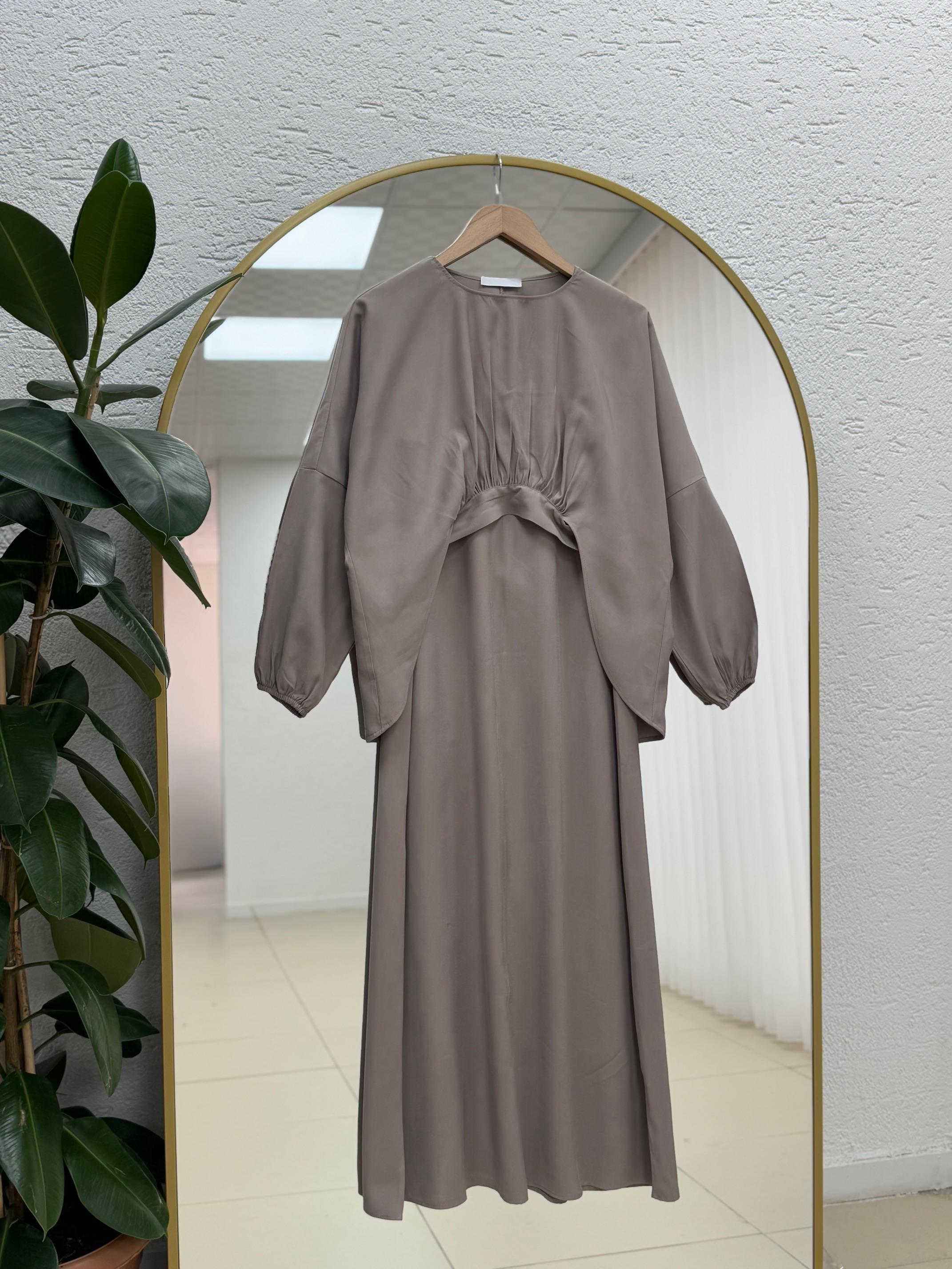 Bemenya Bağlama Detaylı İkili Elbise-AS4095 Vizon