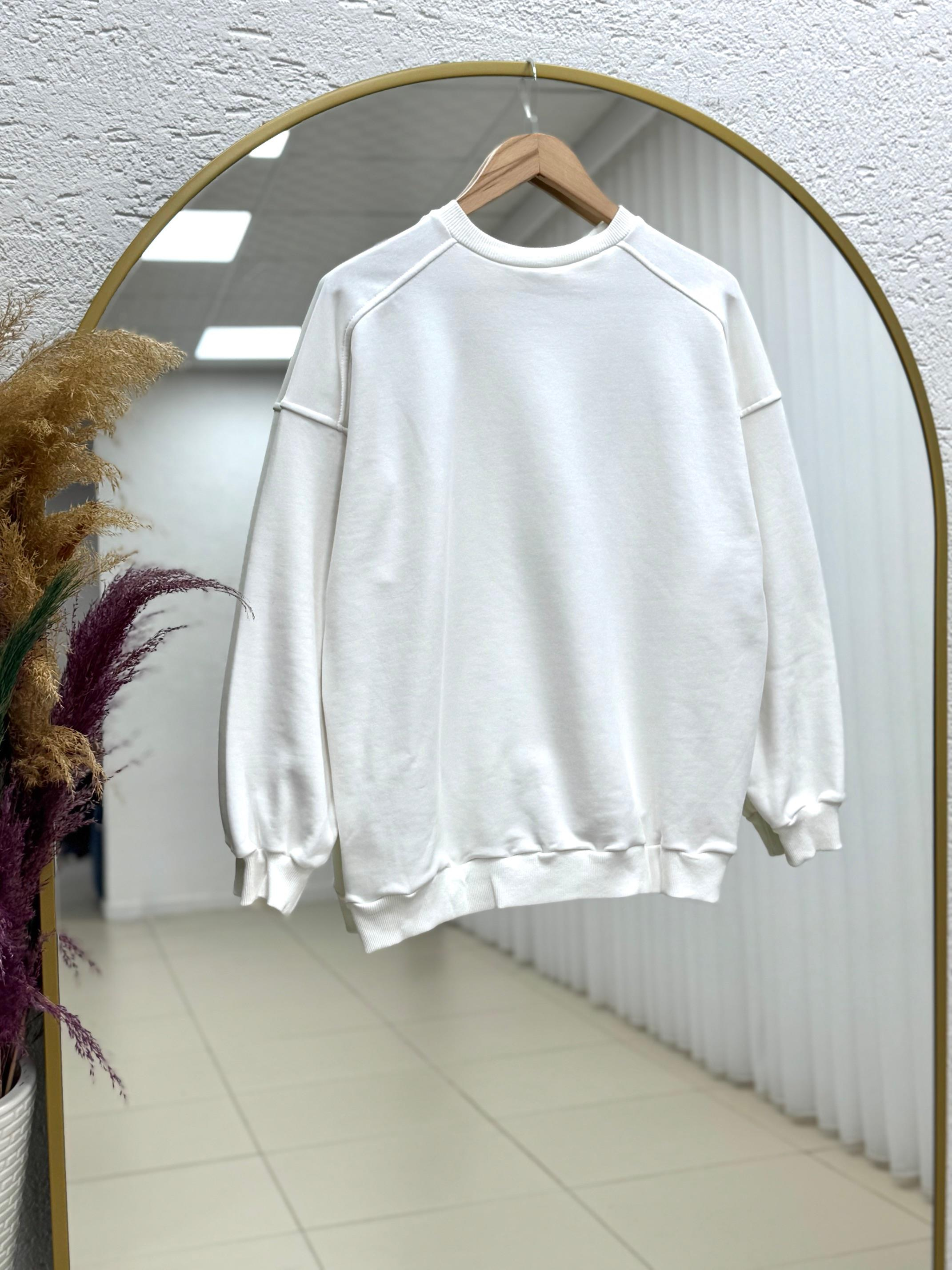 Bemeva Dikiş Detay İki İp Şardonlu Sweat-BN4522 Beyaz