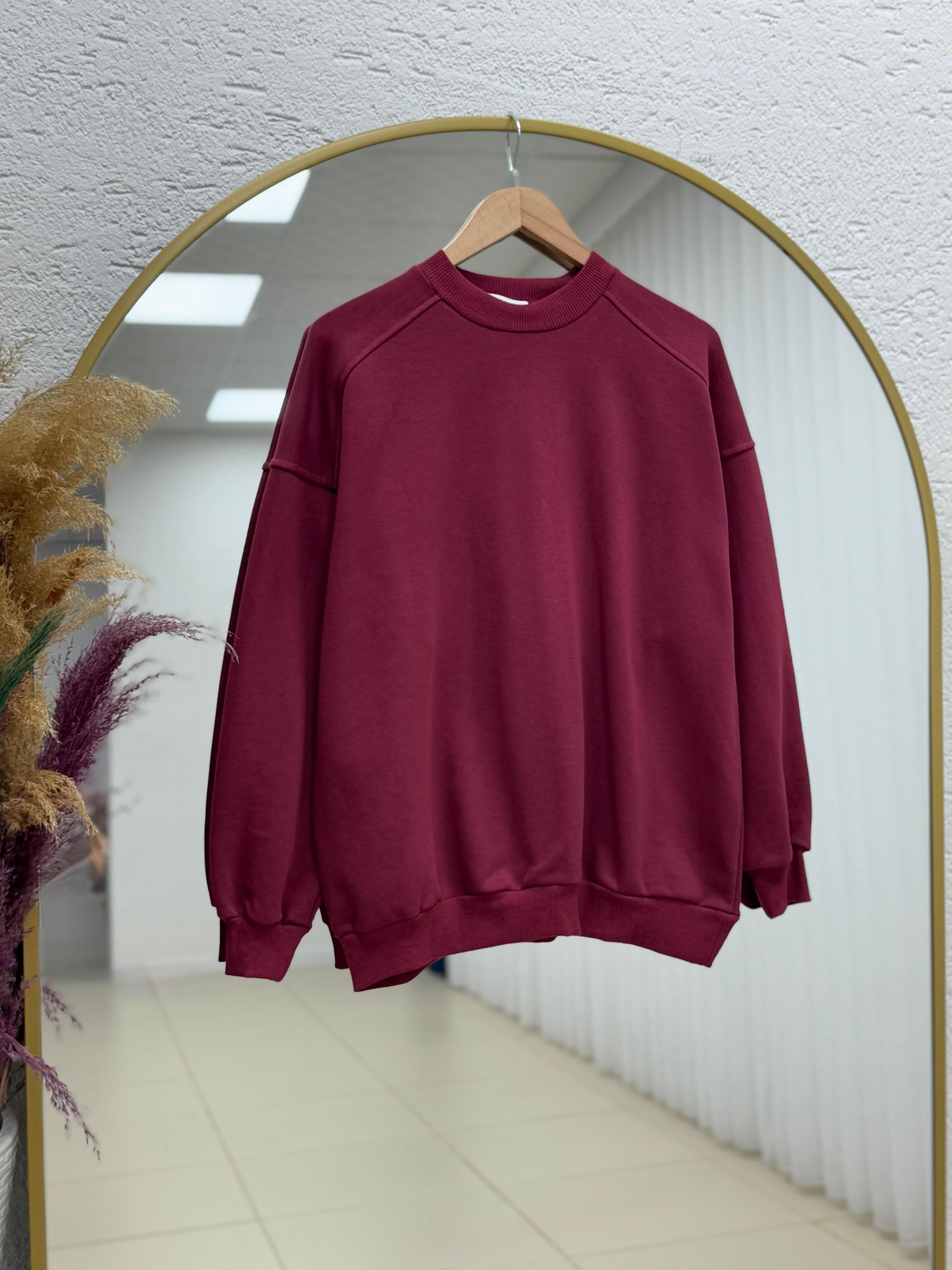 Bemeva Dikiş Detay İki İp Şardonlu Sweat-BN4522 Bordo