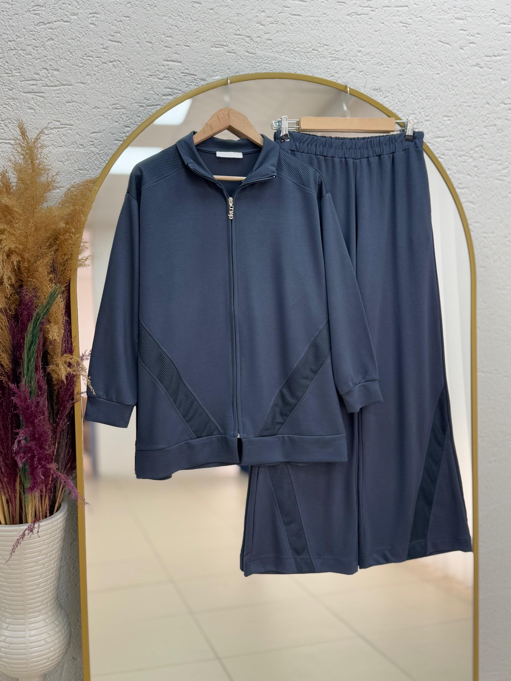 Beminda File Detaylı Fermuarlı Pantolonlu Takım-EU3080 Antrasit