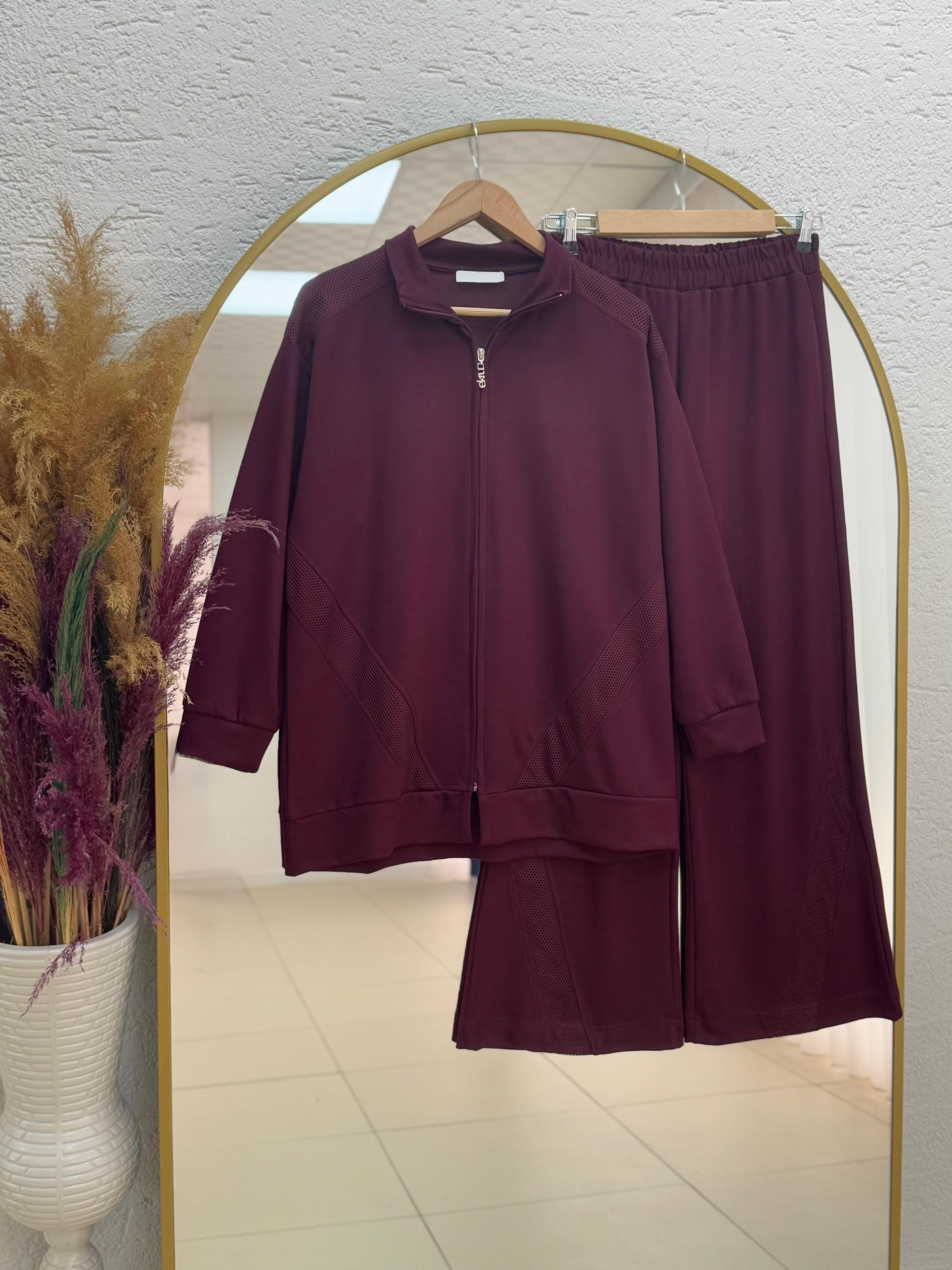 Beminda File Detaylı Fermuarlı Pantolonlu Takım-EU3080 Mürdüm