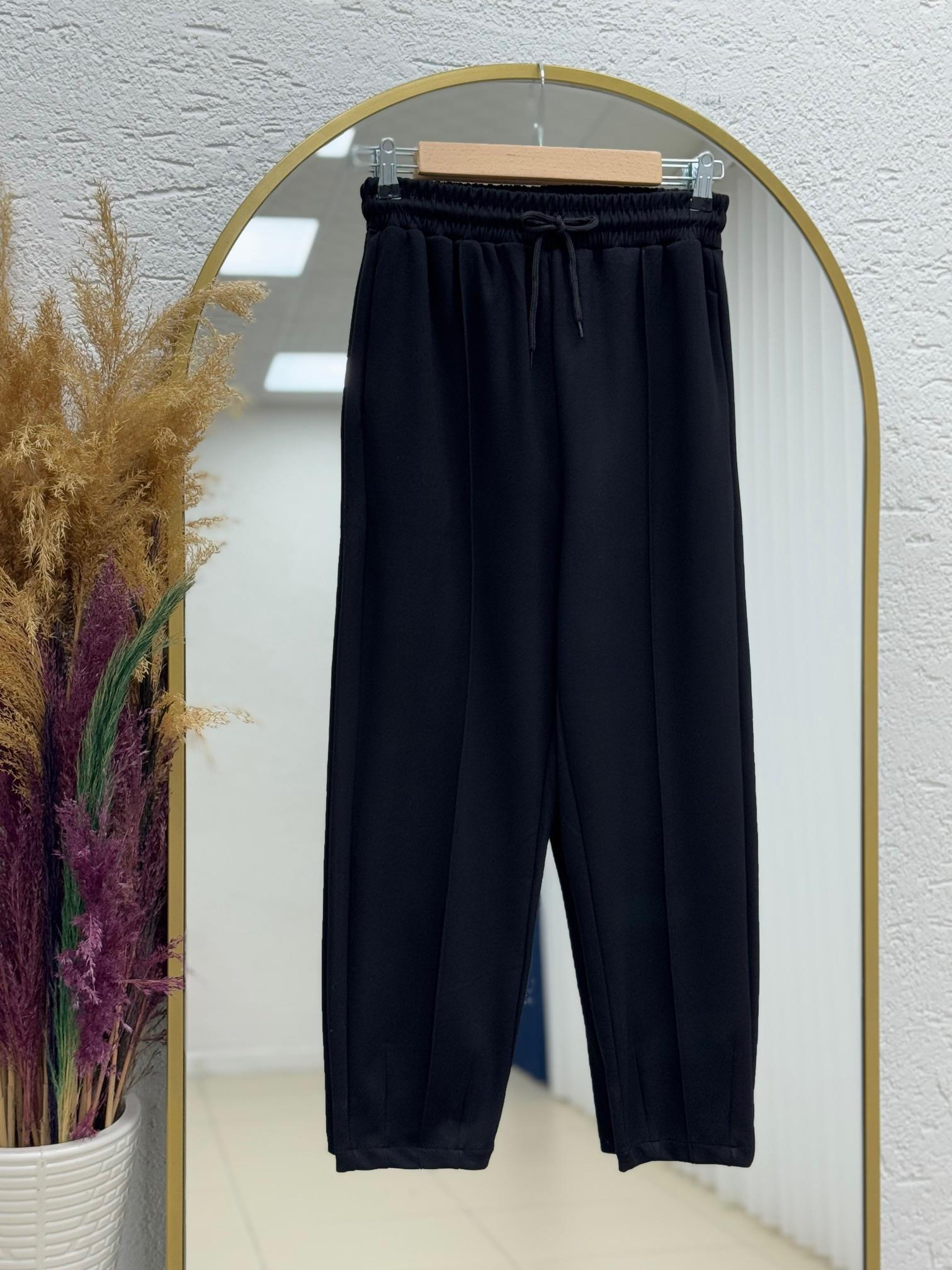 Bemita Beli Sıkmalı Çımalı Düz Eşofman-MA3654 Siyah