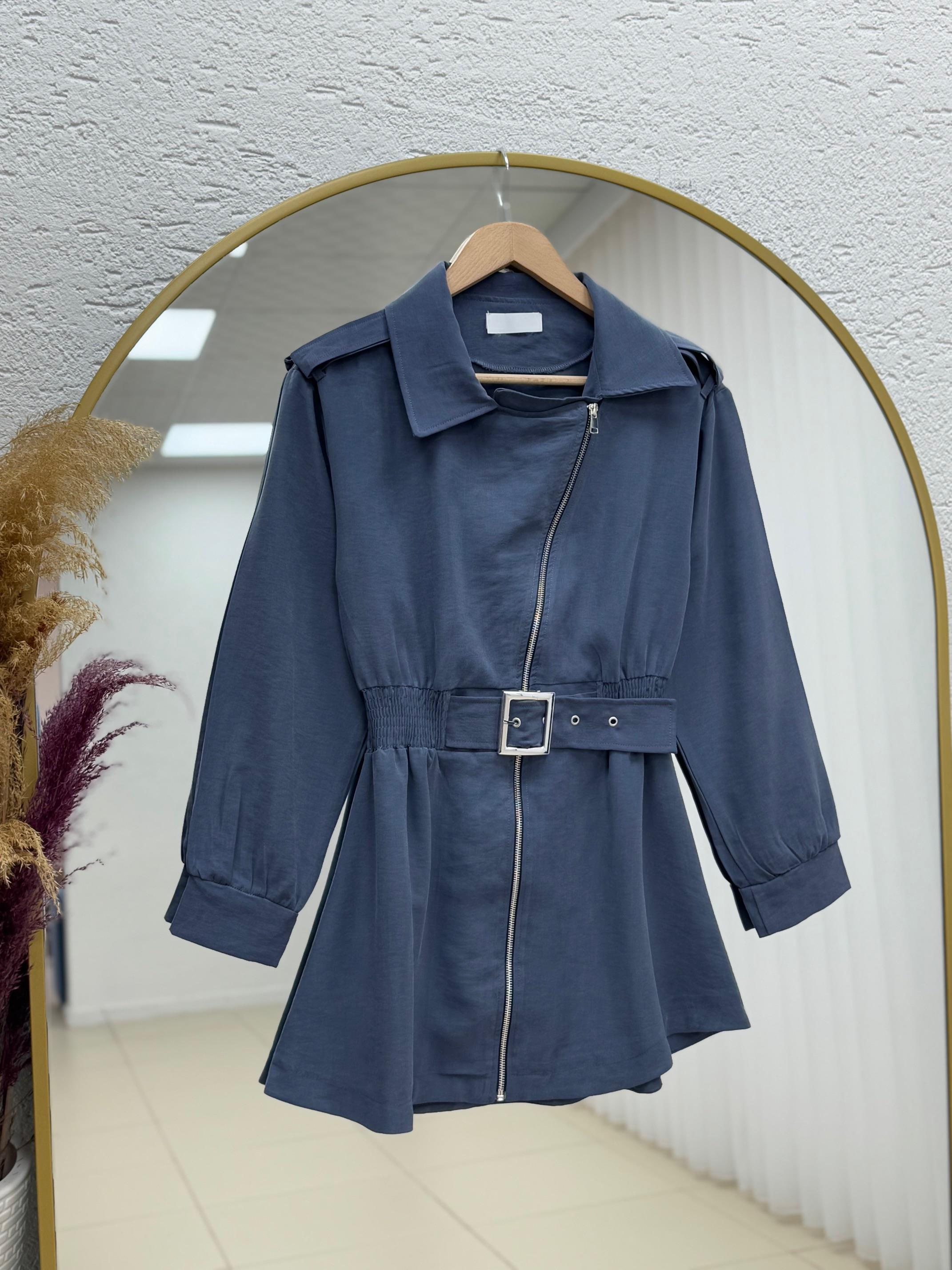 Bemmora Beli Lastikli Kemer Detaylı Ceket-MA1425 Antrasit