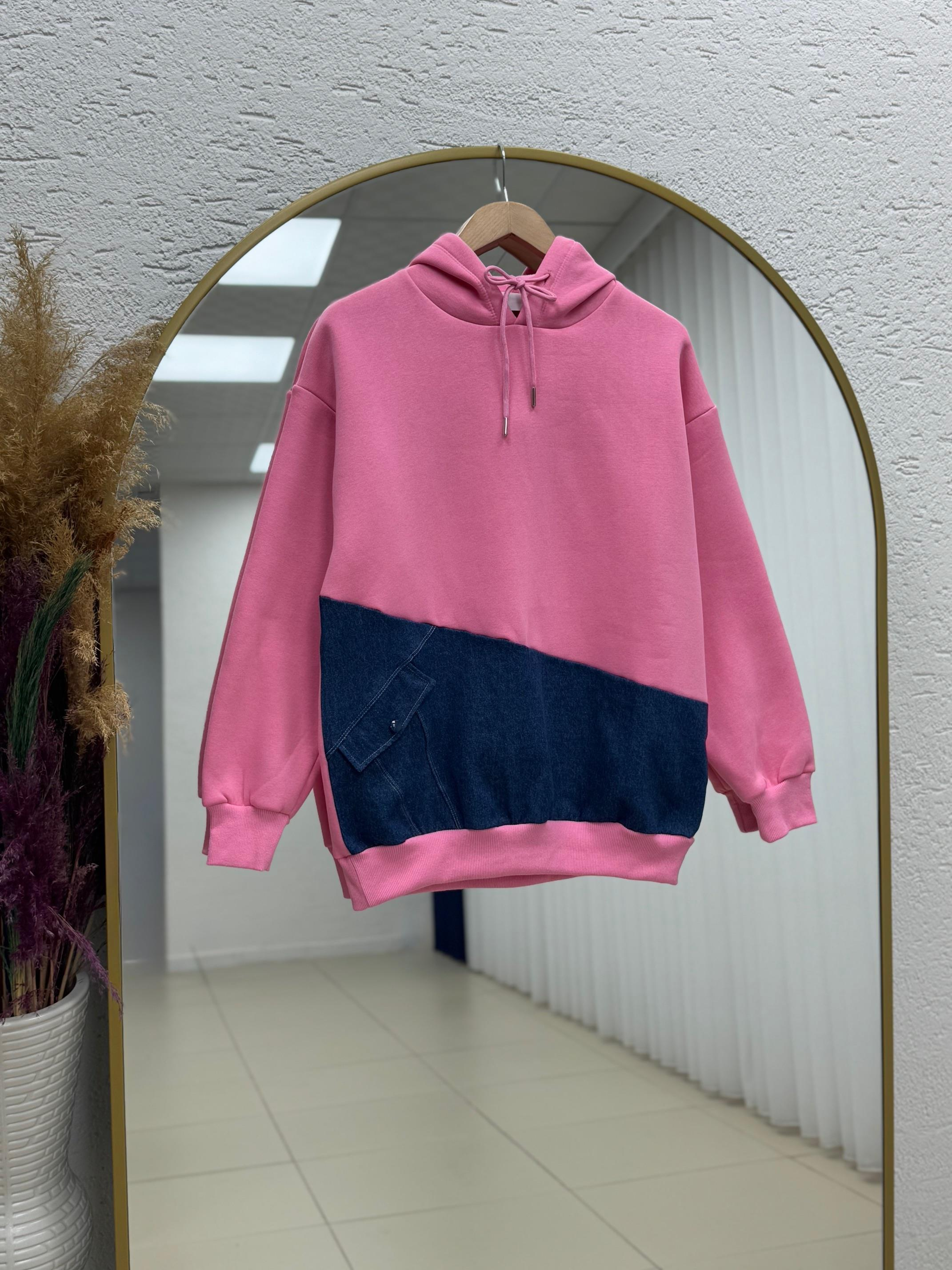 Bemoria Kot Detaylı Gizli Cepli Kapşonlu Üç İp Sweat-ZN1123 Pembe