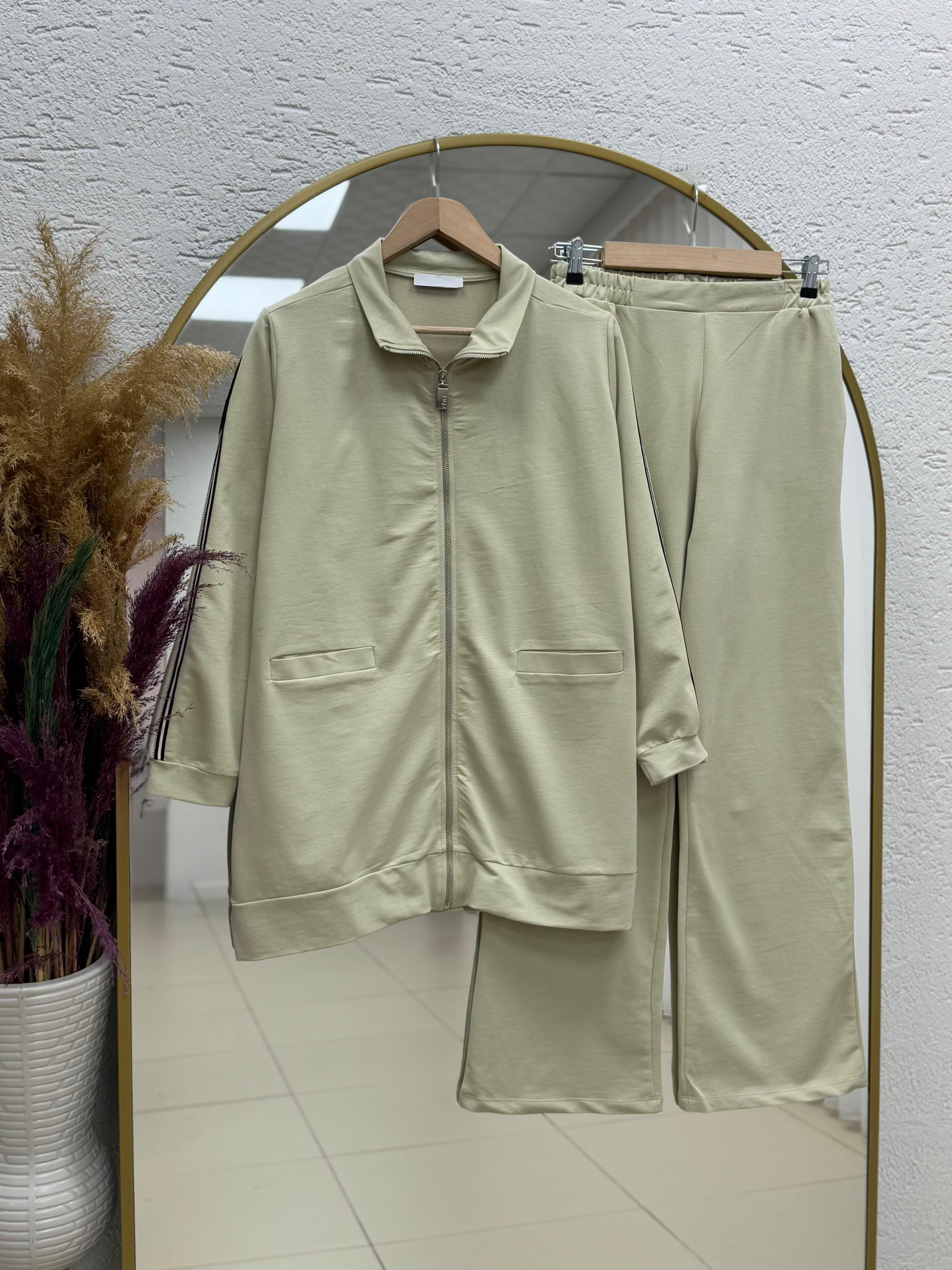 Bemyla Balıkçı Yaka Fermuarlı Şeritli Pantolonlu Takım-EU3048 Mint