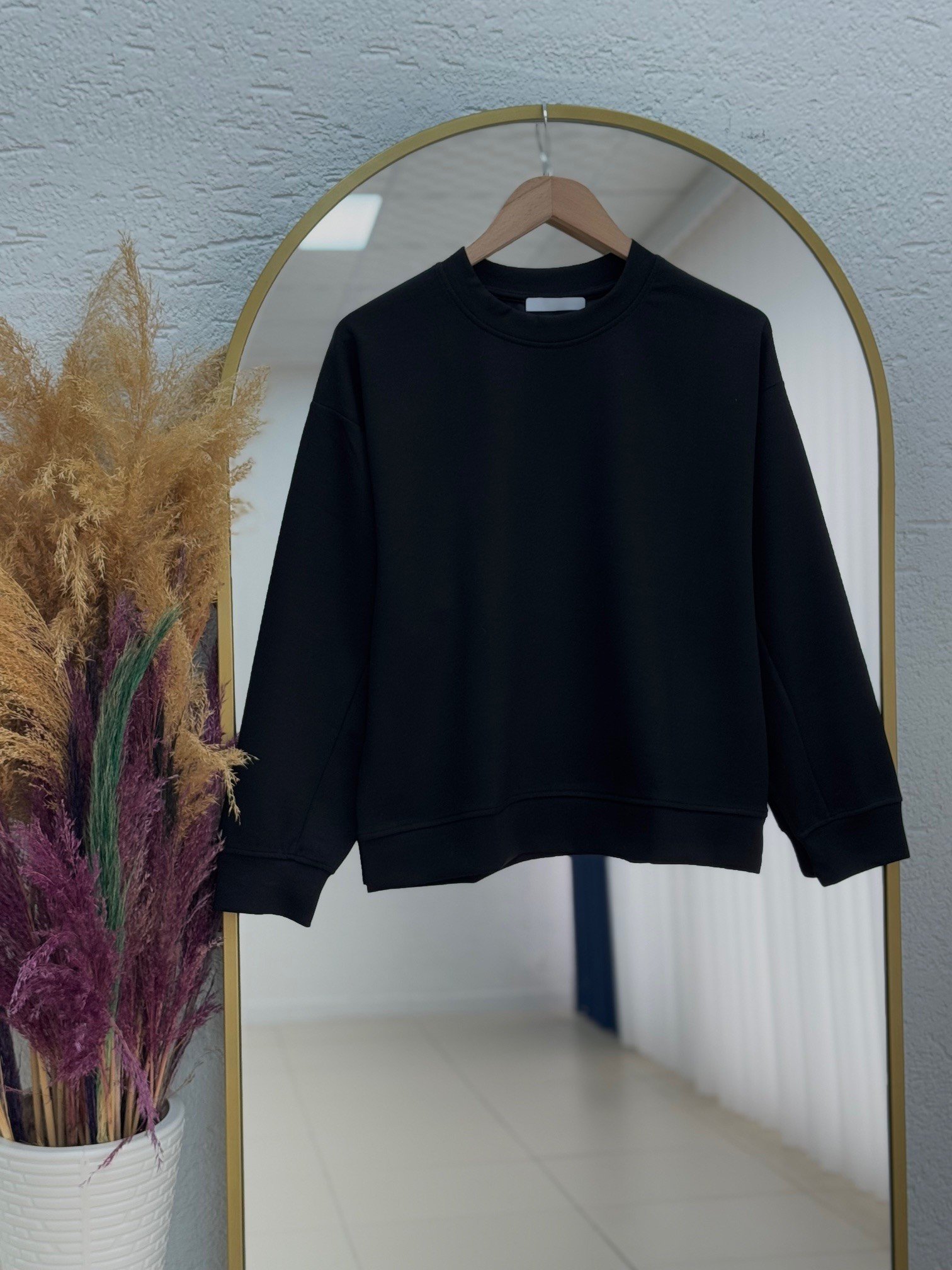 Bengi Kolu Dikişli İki İp Kısa Sweat-Zİ4009 Siyah