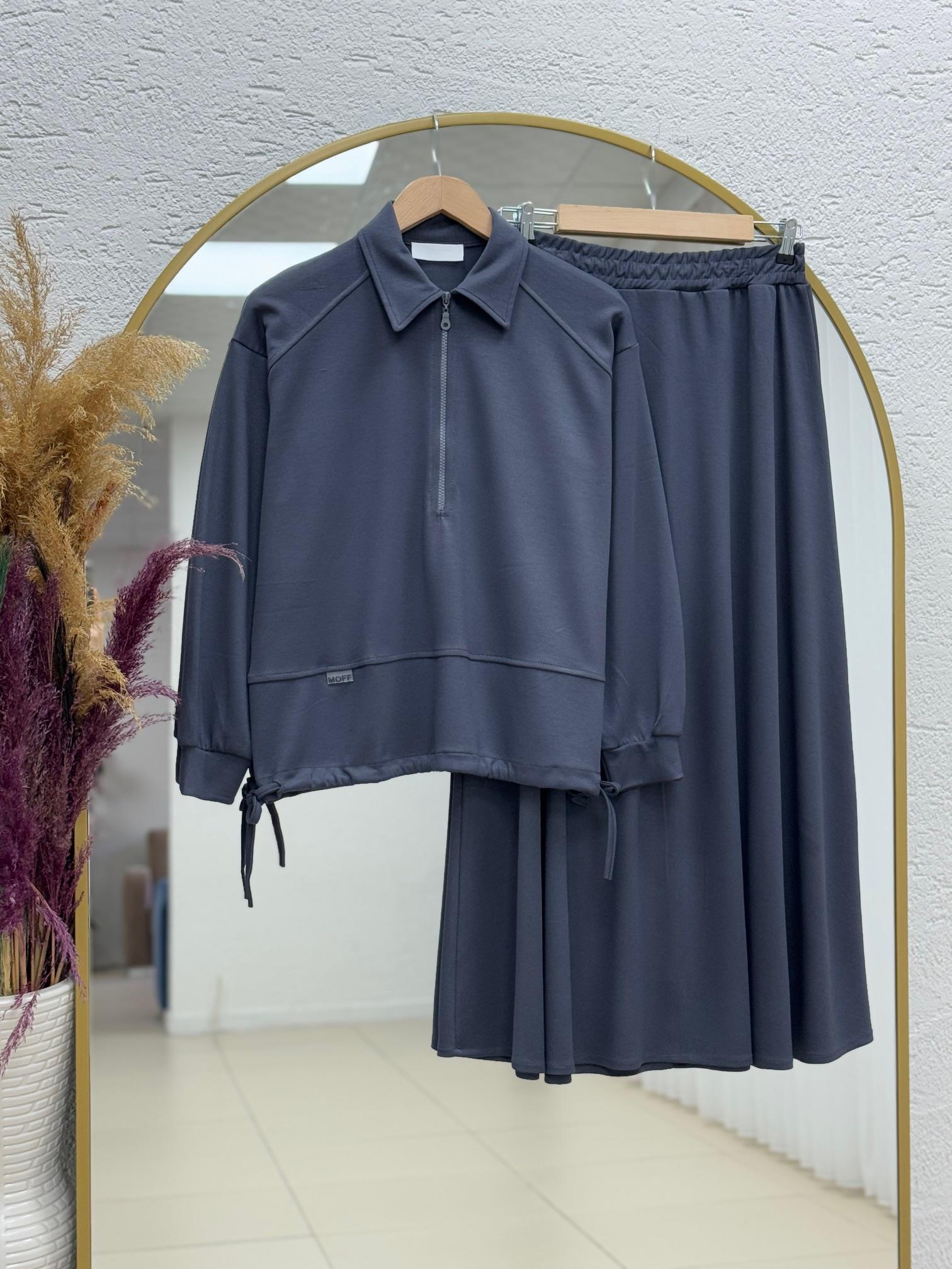 Caminda Yarım Fermuarlı Yandan Bağcıklı Etekli Takım-MF1820 Antrasit