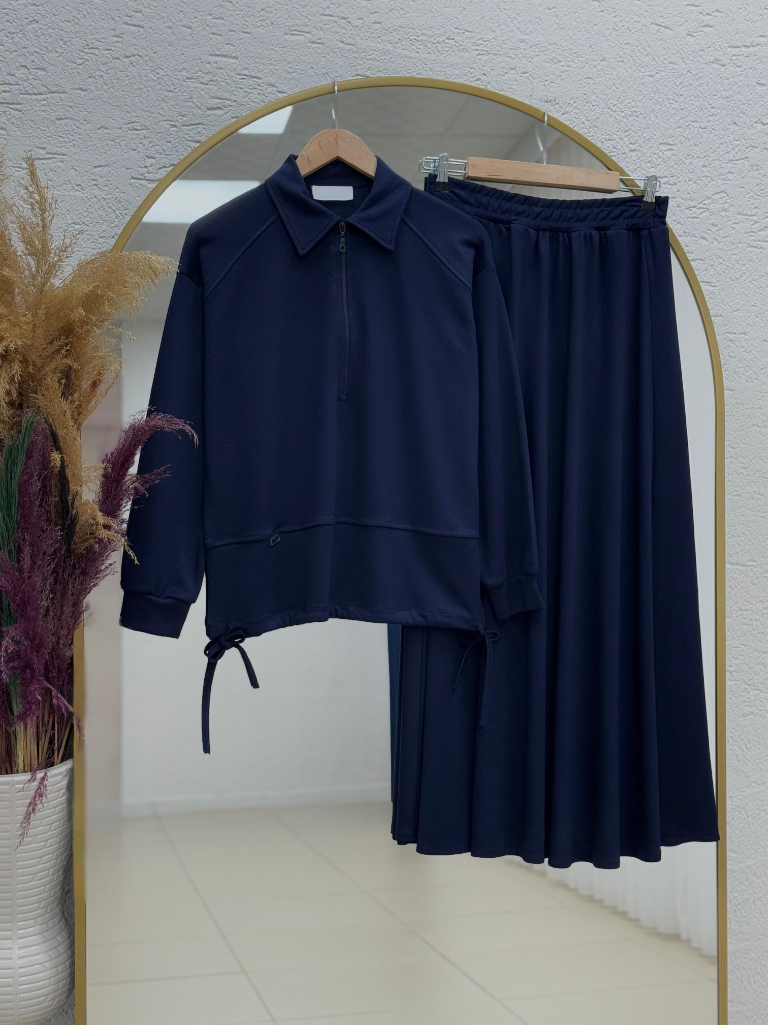 Caminda Yarım Fermuarlı Yandan Bağcıklı Etekli Takım-MF1820 Lacivert