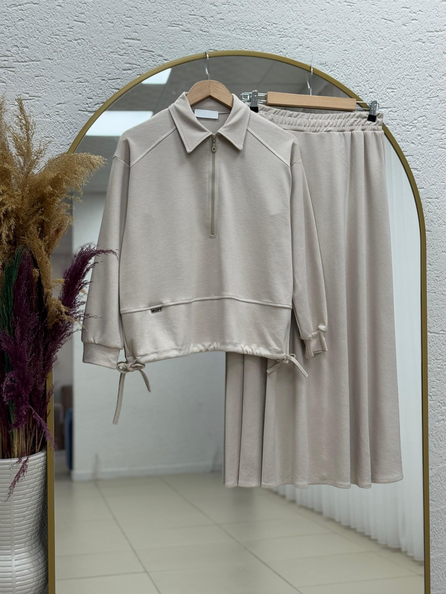 Caminda Yarım Fermuarlı Yandan Bağcıklı Etekli Takım-MF1820 Taş