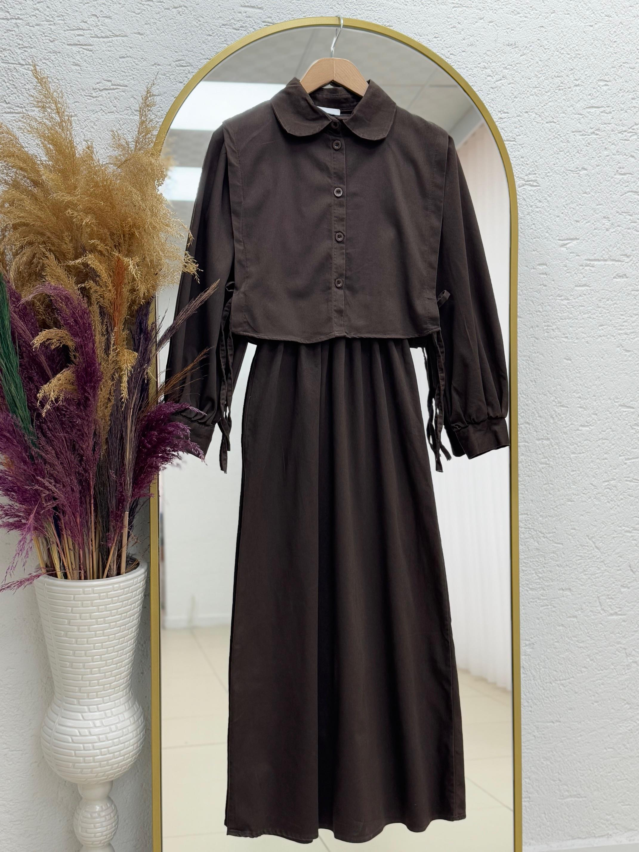 Camista Beli Lastikli Yelekli Kot Elbise-EK594.3 Kahve