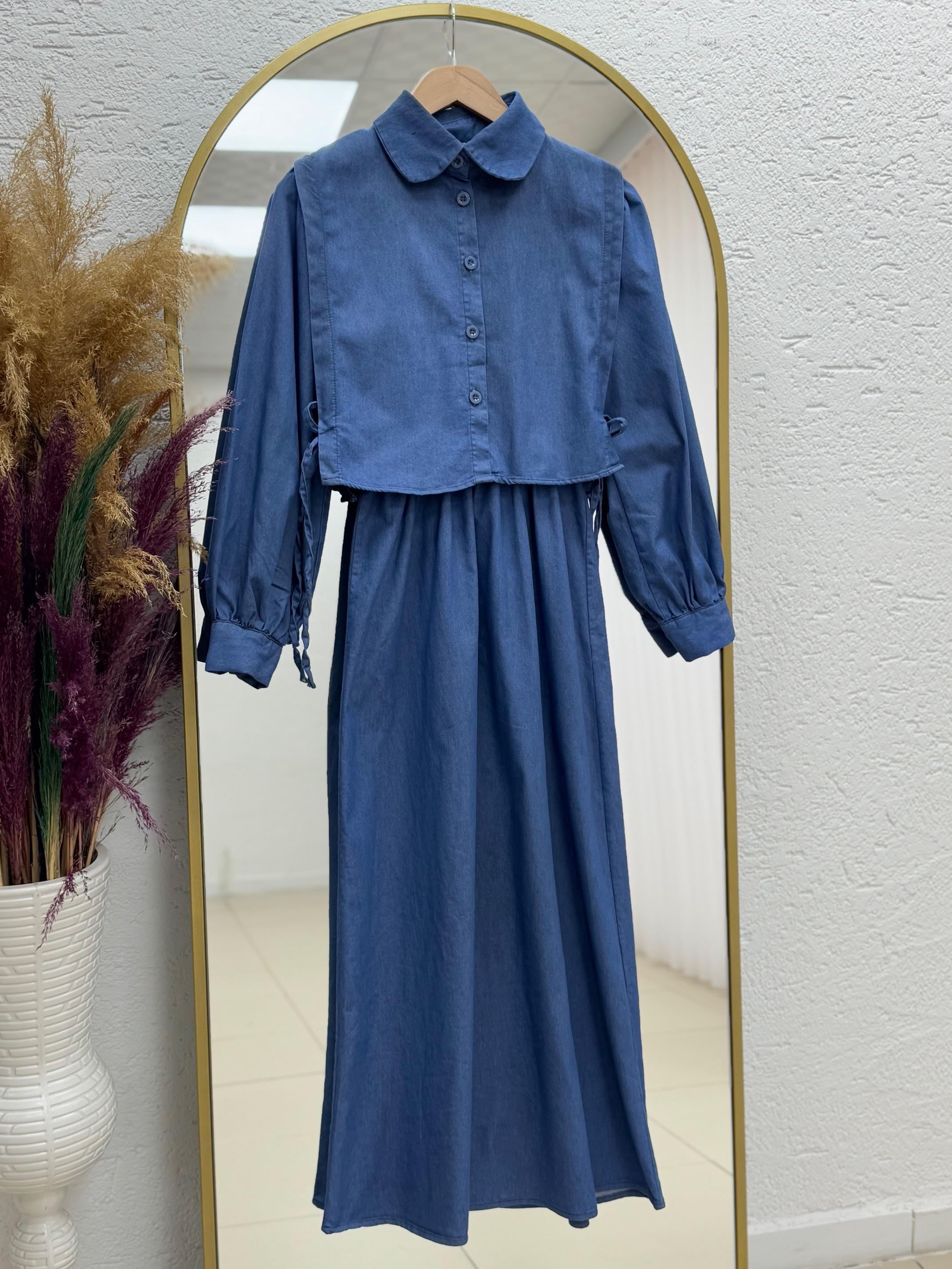 Camista Beli Lastikli Yelekli Kot Elbise-EK594.3 Mavi