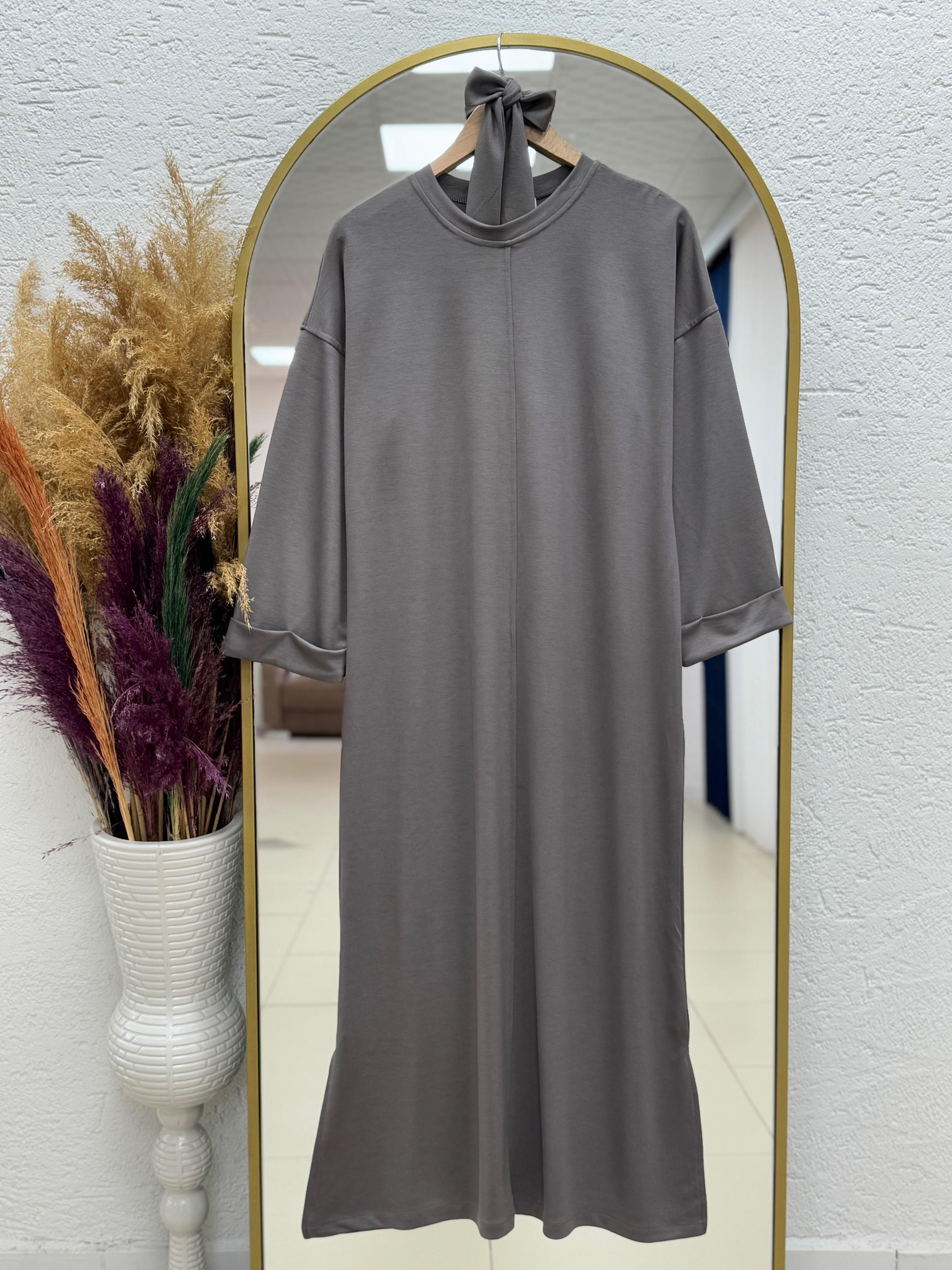 Camonia Kol Ucu Ve Önü Dikiş Detay Elbise-NA2409 Gri