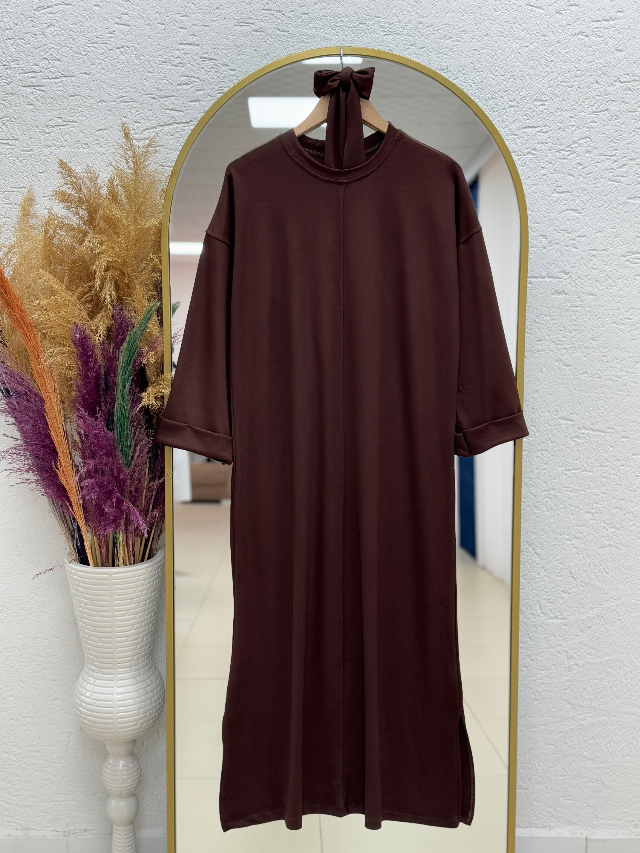 Camonia Kol Ucu Ve Önü Dikiş Detay Elbise-NA2409 Kahve