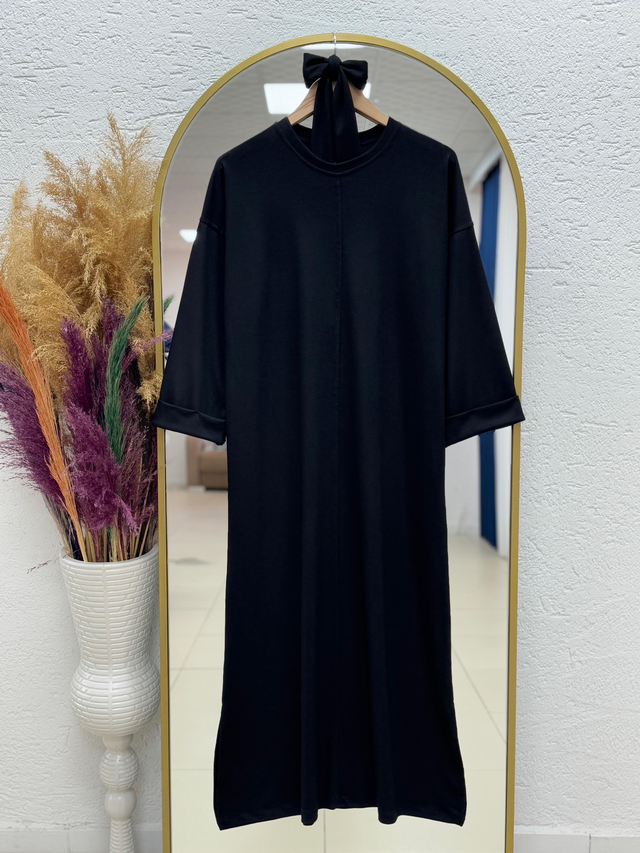 Camonia Kol Ucu Ve Önü Dikiş Detay Elbise-NA2409 Siyah