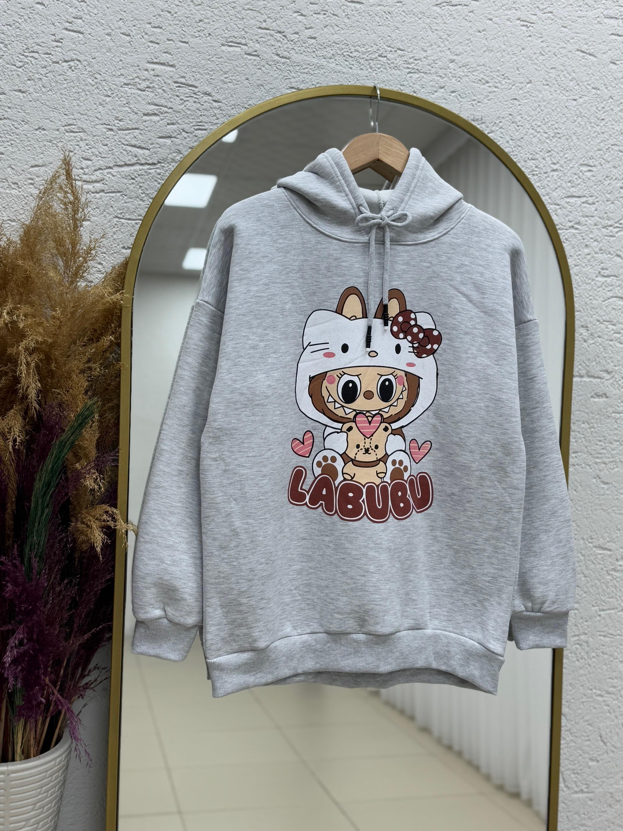 Camoria Labubu Baskılı Üç İp Kapşonlu Sweat-CI4104 Gri