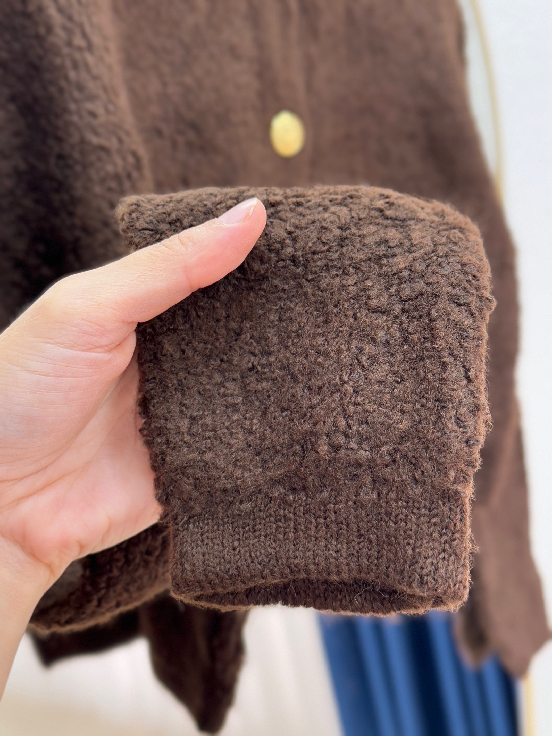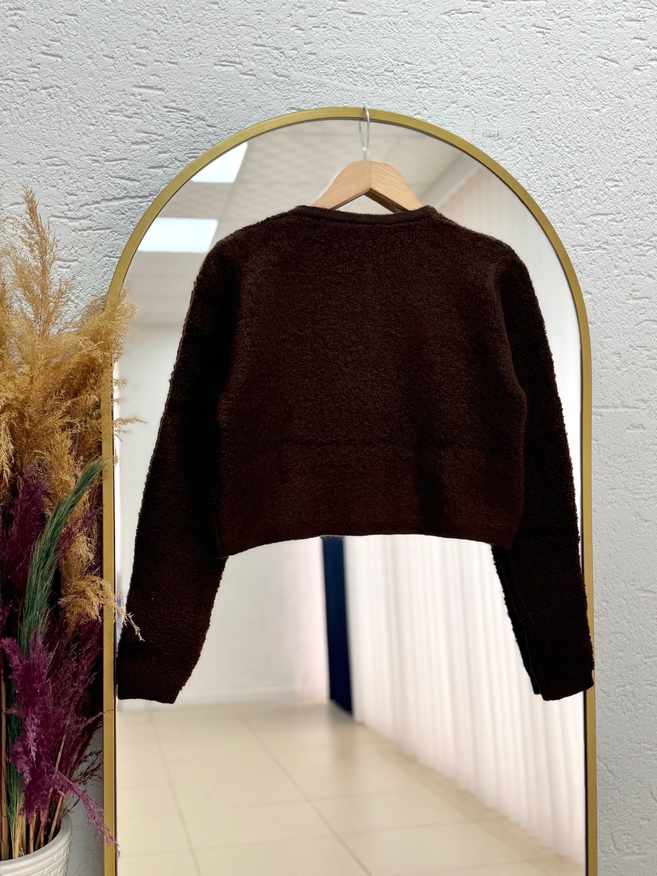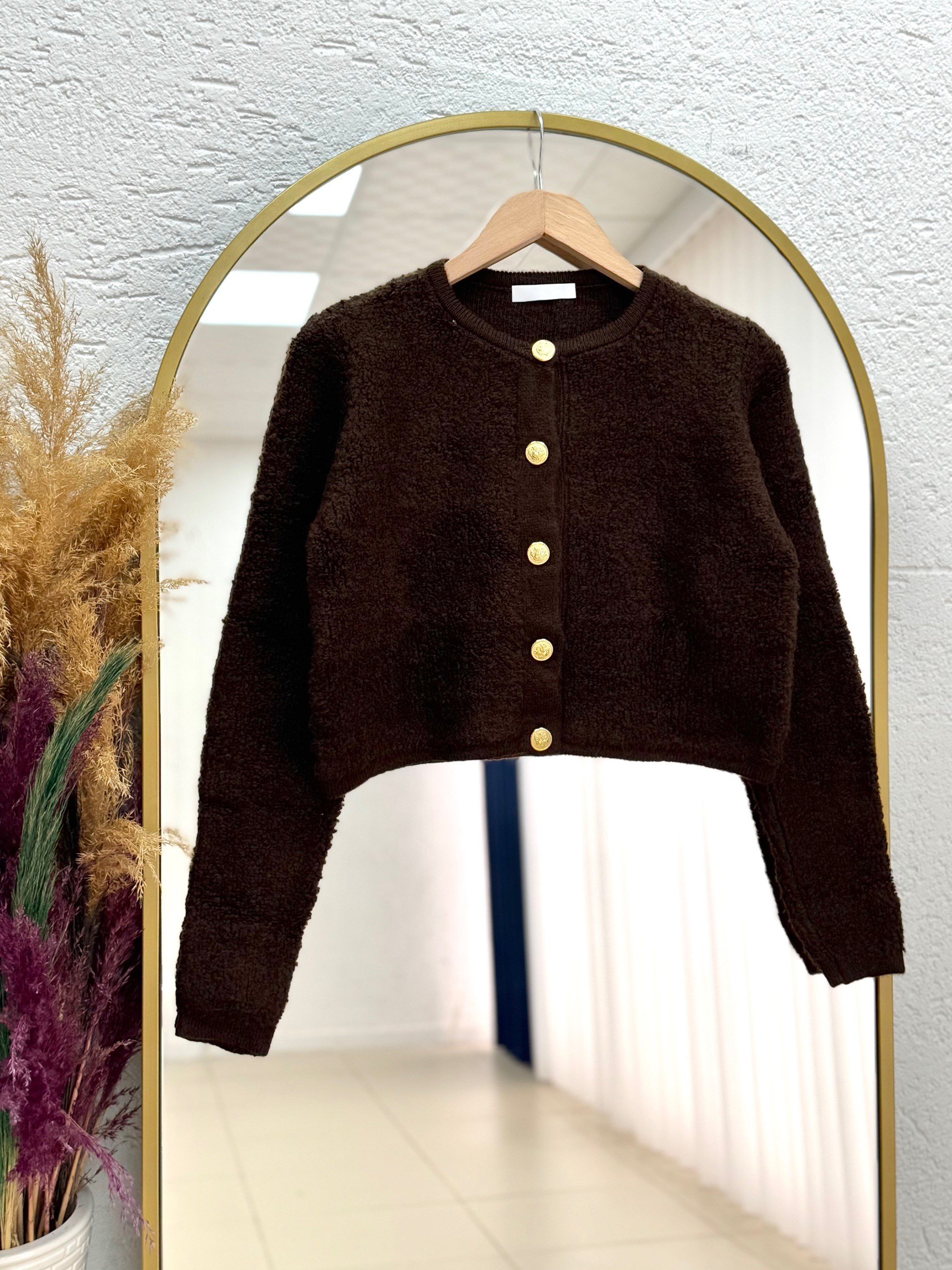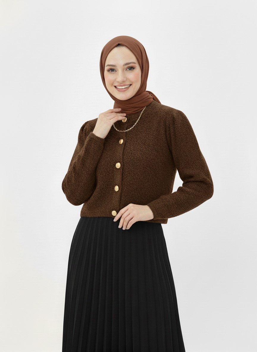 Camuna Gold Düğmeli Mini Peluş Hırka-Zİ5558 Kahve
