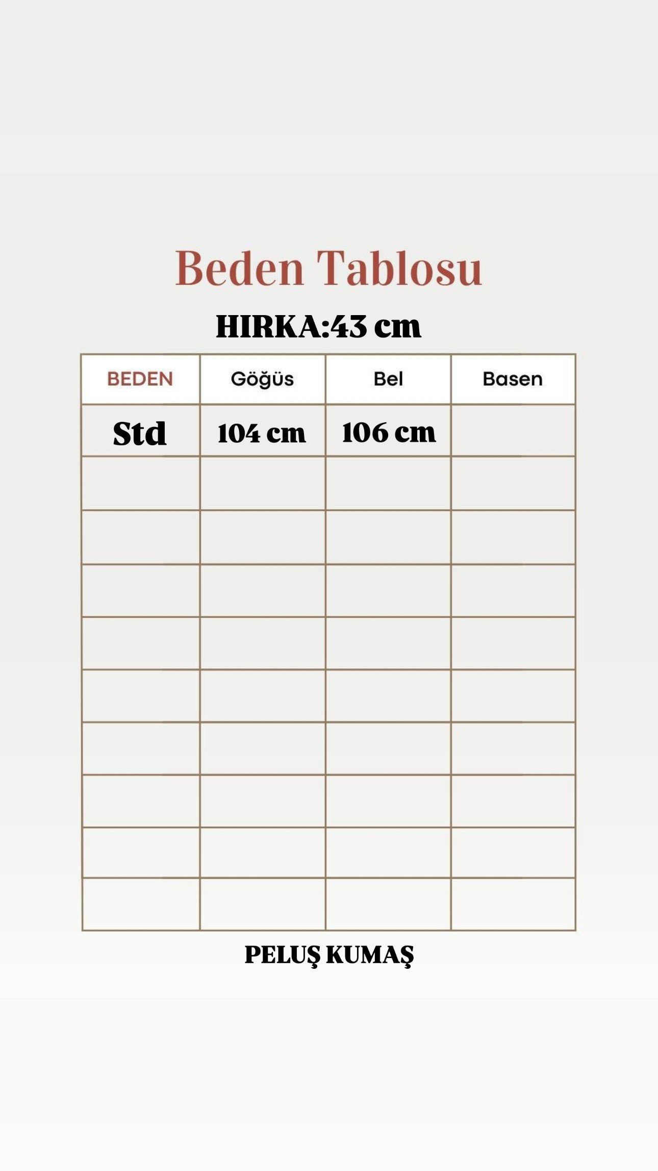 • Ürün Boyu: 43 CM (1-3 cm arası değişiklik gösterebilir.) • Ürün Kumaşı:Peluş Kumaş • Kalıp Bilgisi: Tam Kalıp • Stüdyo çekimlerinde renkler ışık farklılığından dolayı değişiklik gösterebilir.