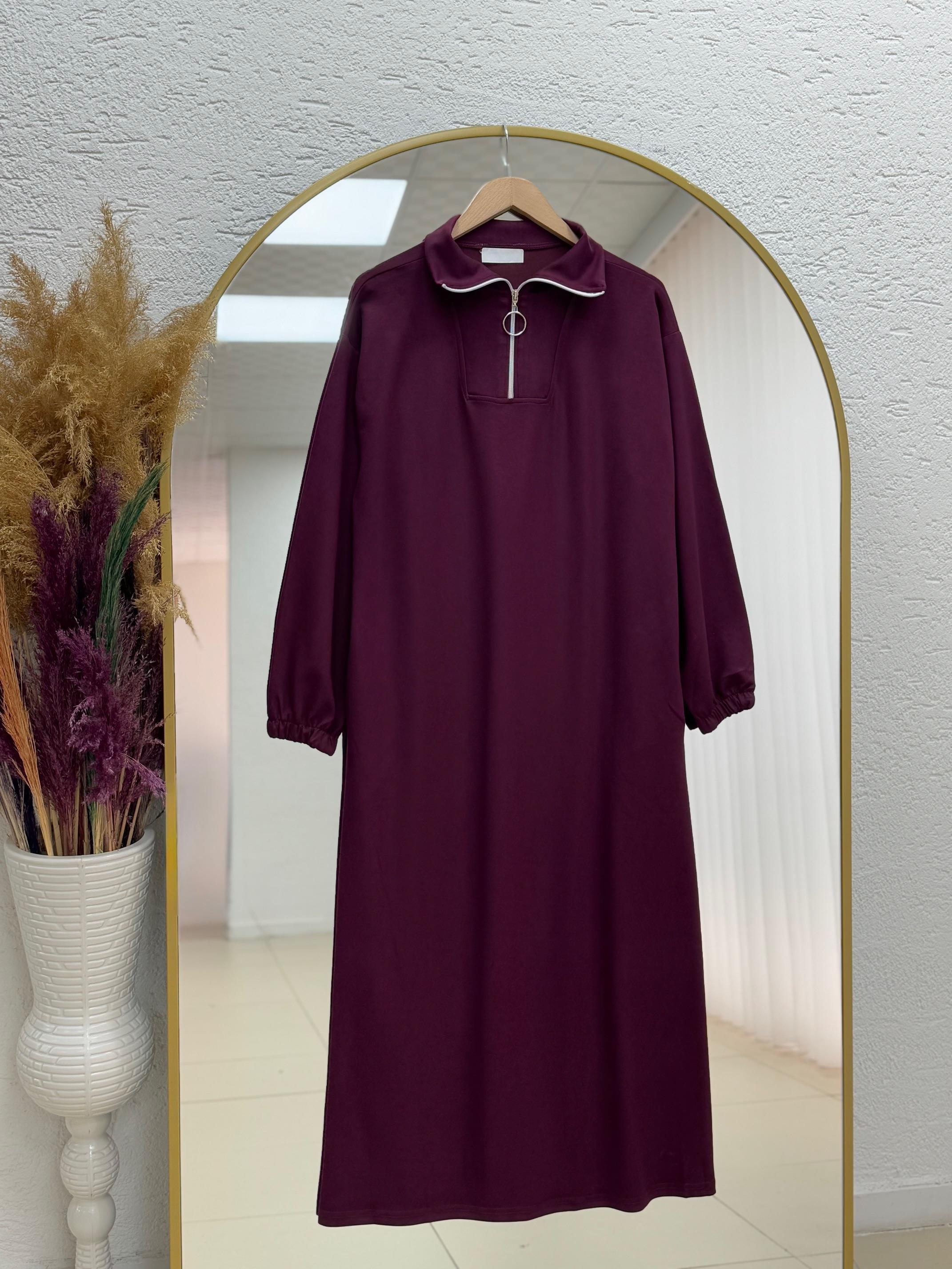 Camyla Balıkçı Yaka Yarım Fermuarlı Elbise-PE2022 Bordo