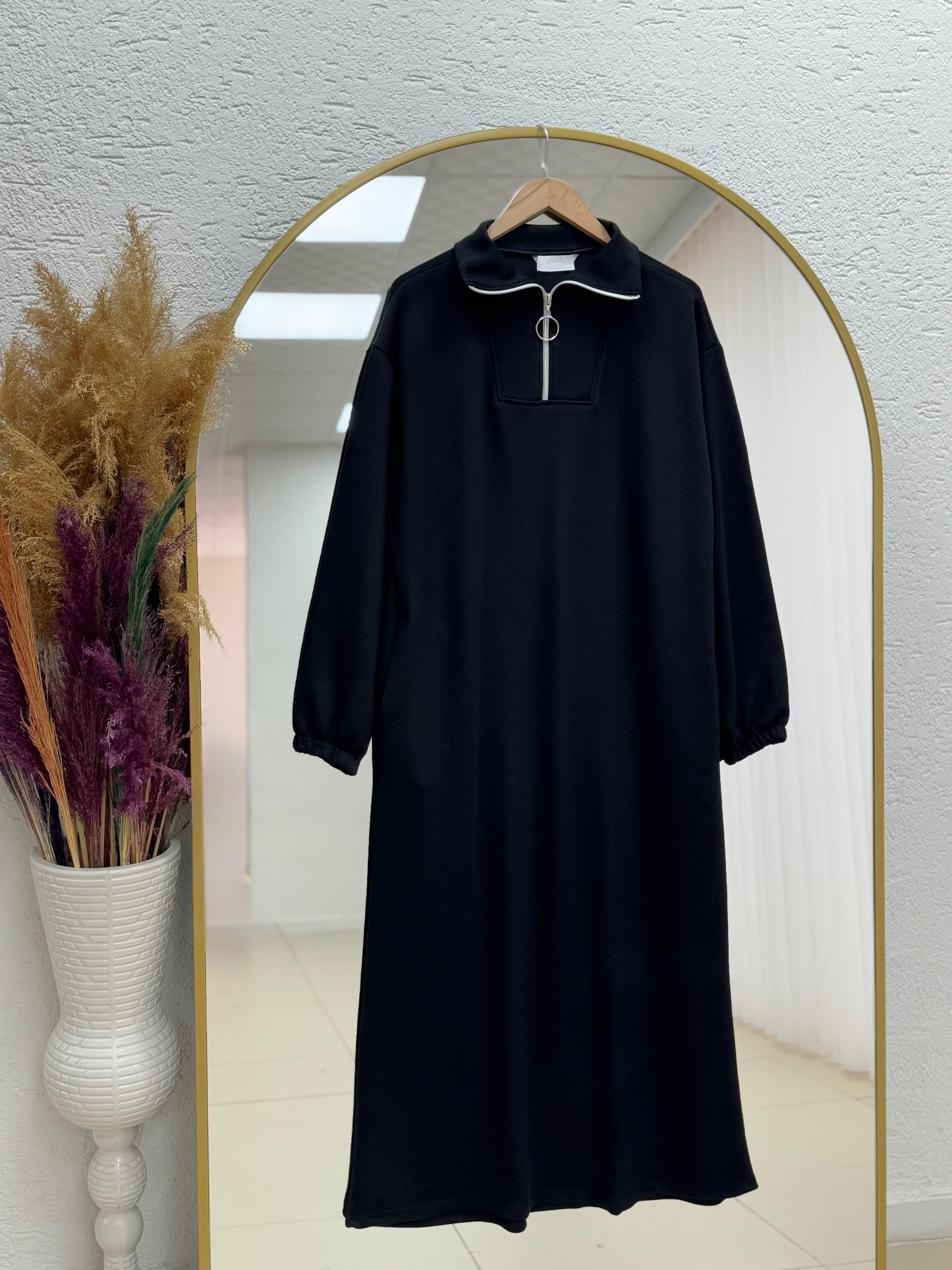 Camyla Balıkçı Yaka Yarım Fermuarlı Elbise-PE2022 Siyah