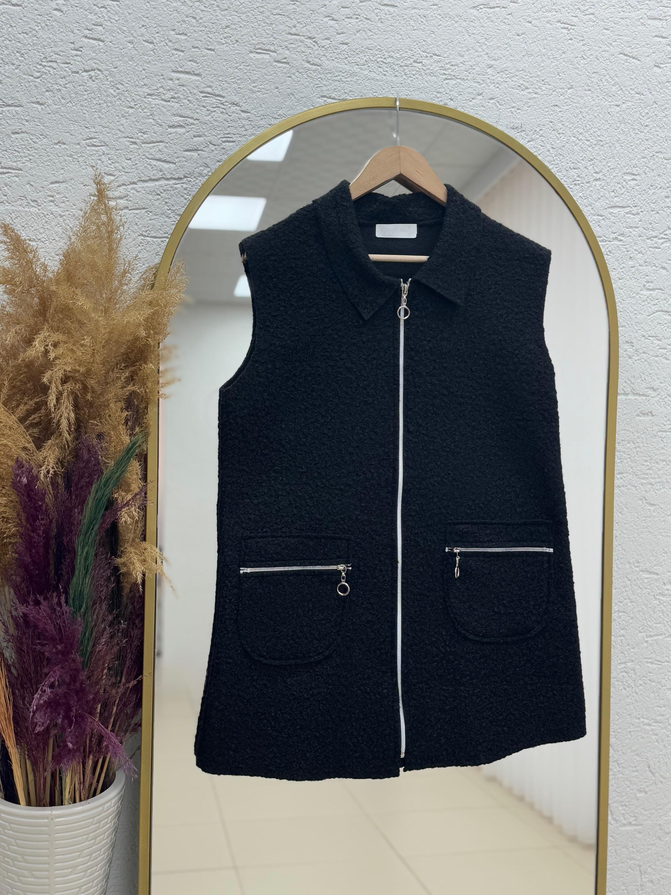 Capara Çift Cepli Fermuarlı Yelek-FS4403 Siyah