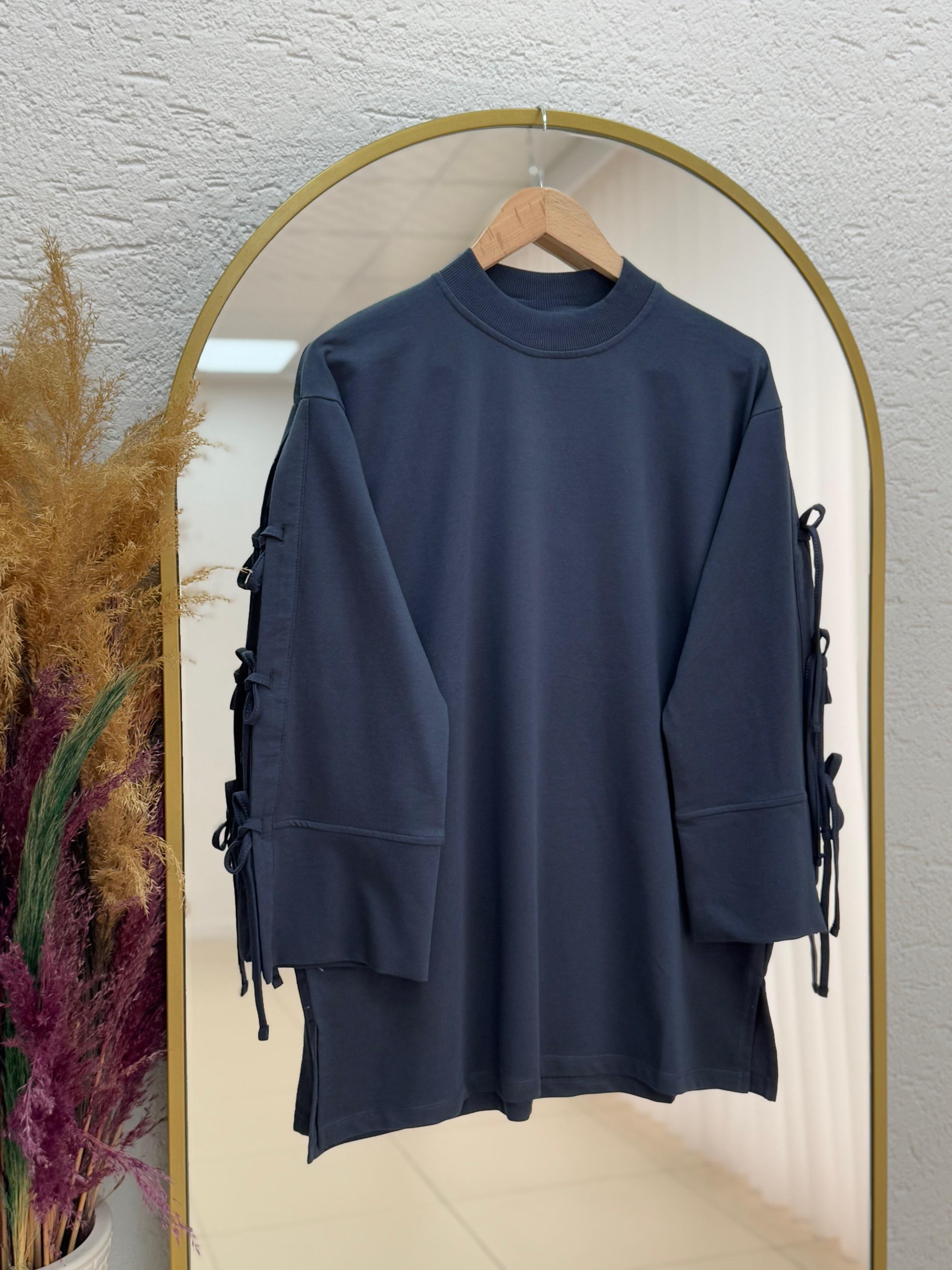 Capedra Kolları Bağcık Detaylı Sweatshirt-EU3089 Antrasit