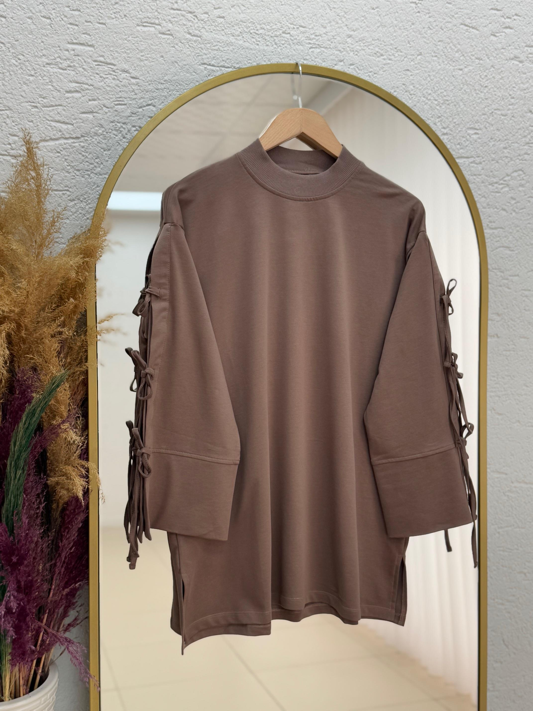 Capedra Kolları Bağcık Detaylı Sweatshirt-EU3089 Sütlü Kahve