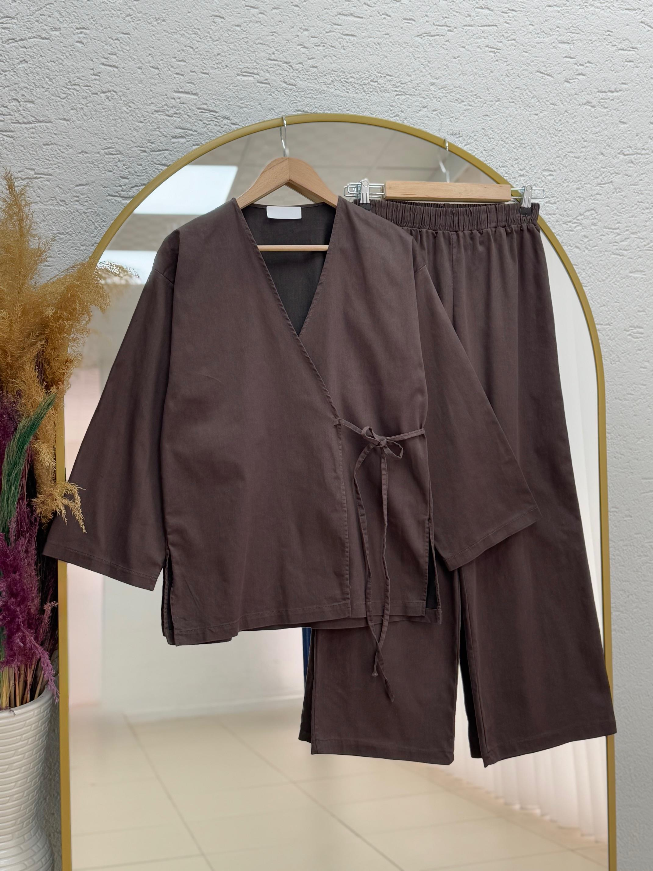 Capessa Kimonosu Bağlamalı Pantolonlu Kot Takım-EK544.5 Kahve