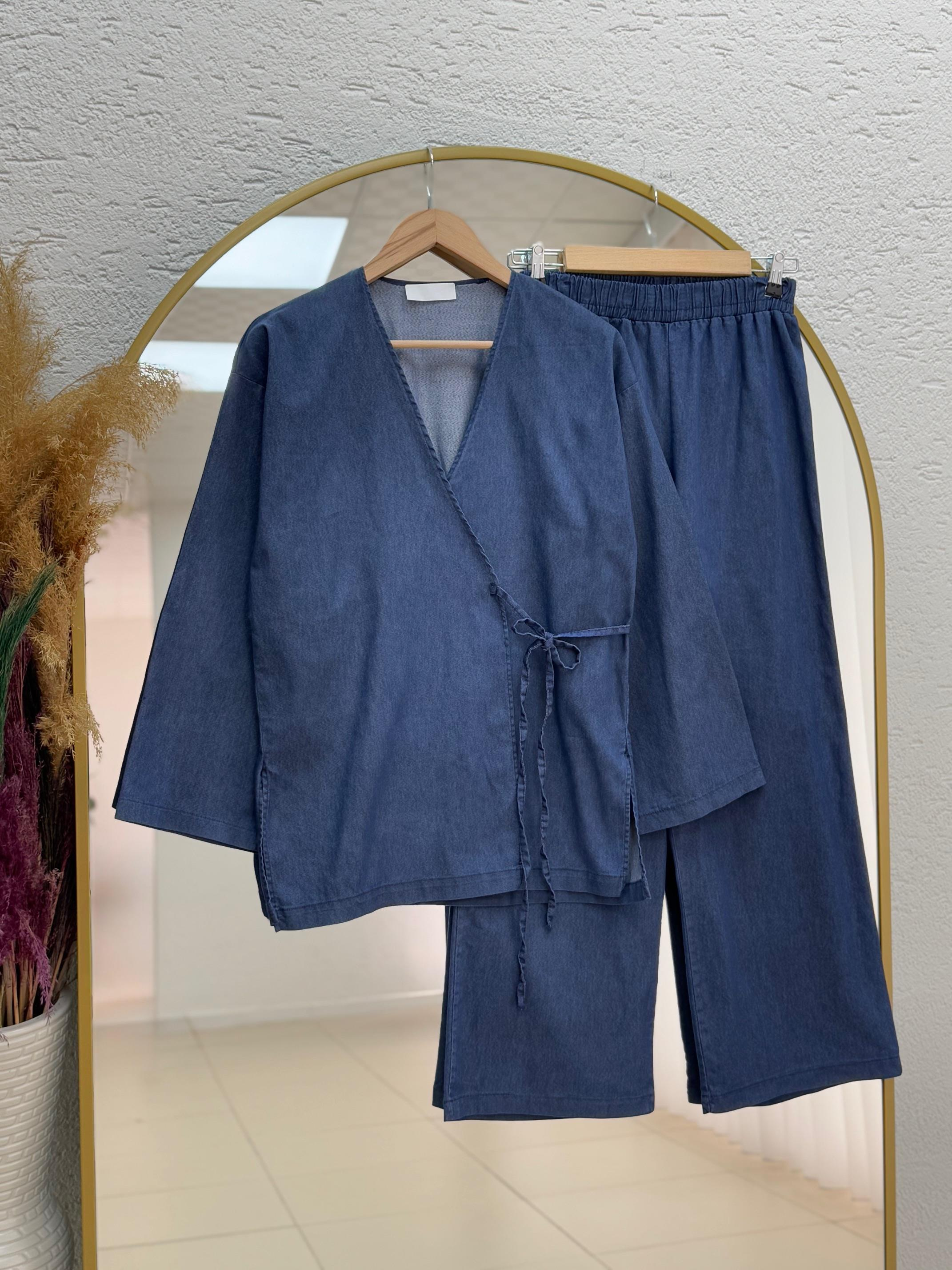 Capessa Kimonosu Bağlamalı Pantolonlu Kot Takım-EK544.5 Kot Rengi