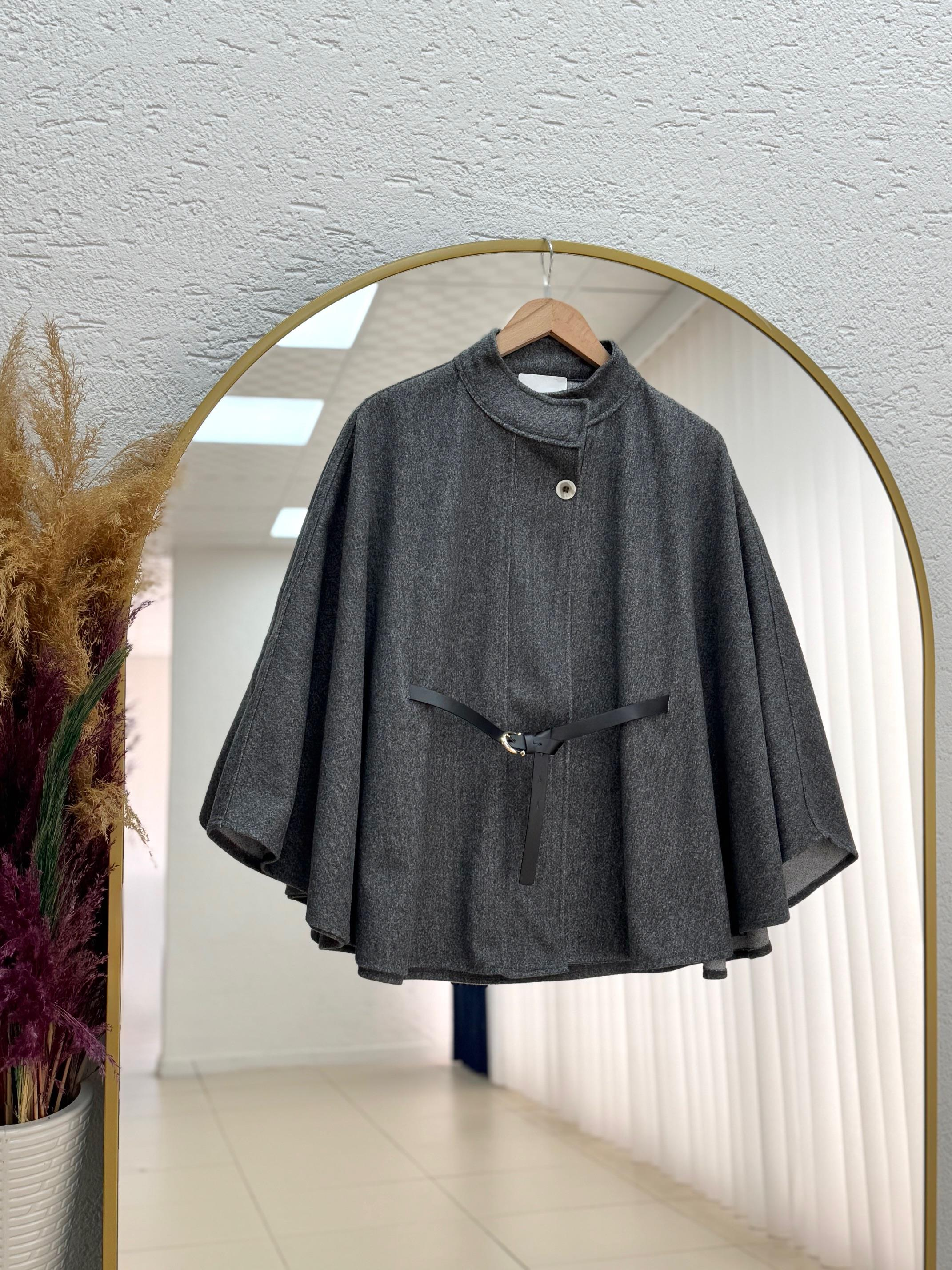 Capique Tek Düğmeli Kemerli Kaşe Panço-Çİ457 Antrasit