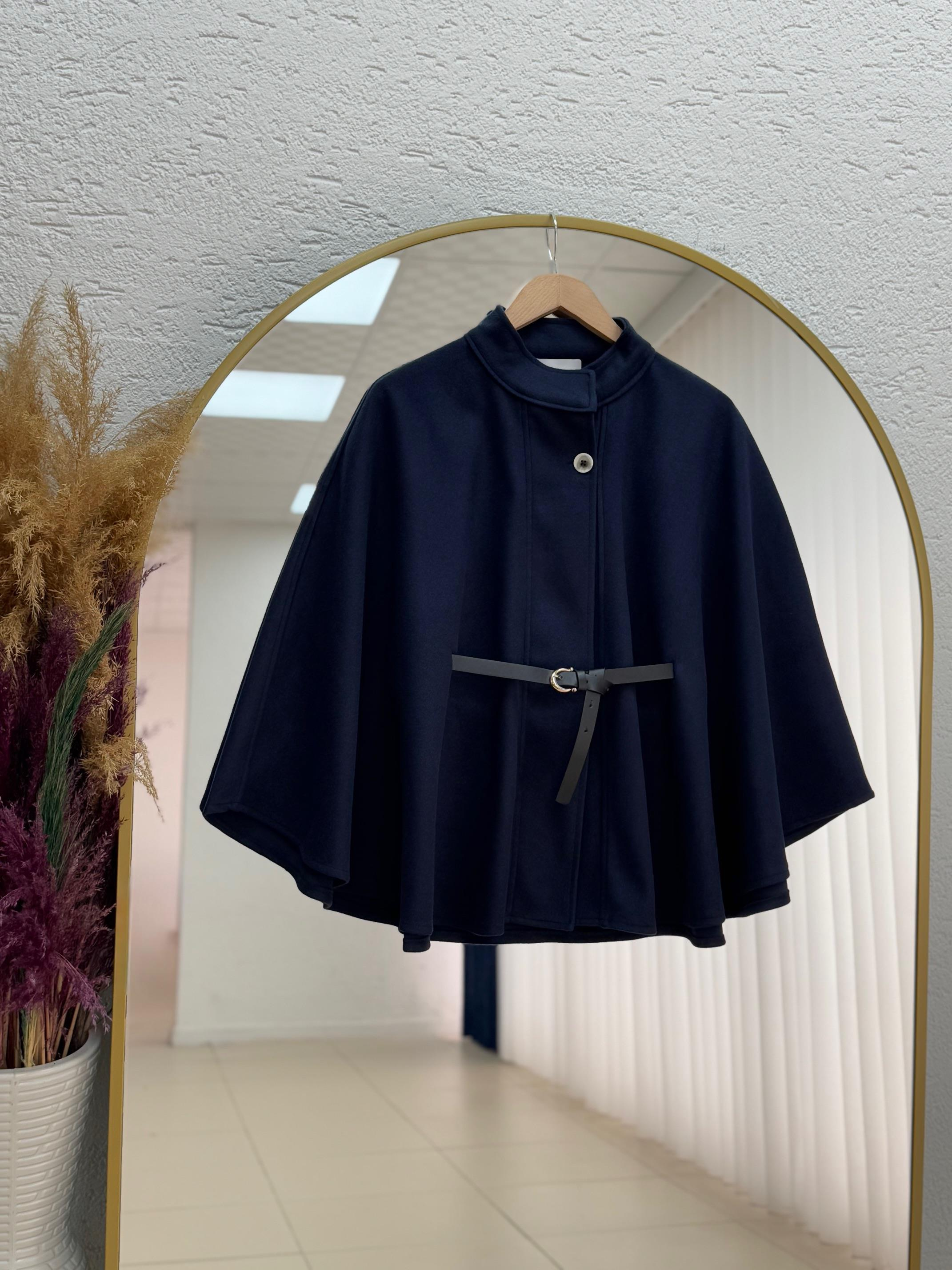 Capique Tek Düğmeli Kemerli Kaşe Panço-Çİ457 Lacivert
