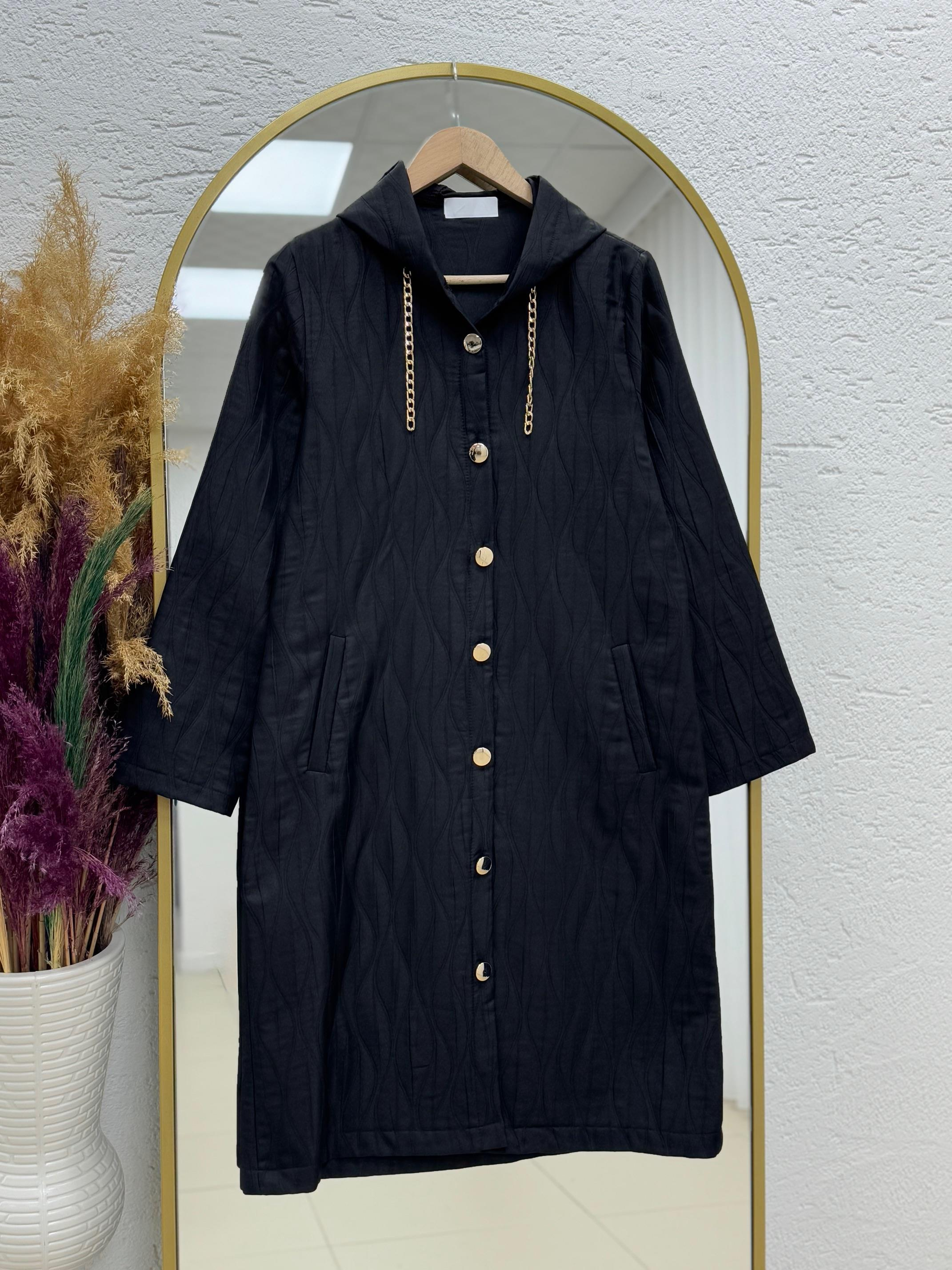 Celasya Kapşonlu Ara Boy Kapitone Trenç-ZŞ6005 Siyah