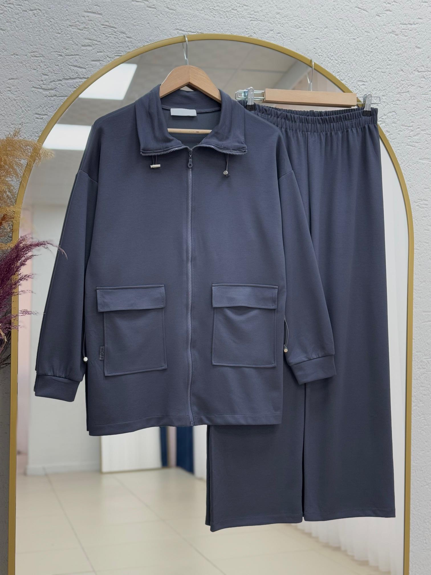 Celera Yanları Sıkmalı Çift Cepli Fermuarlı Pantolonlu Takım-MF1817 Antrasit