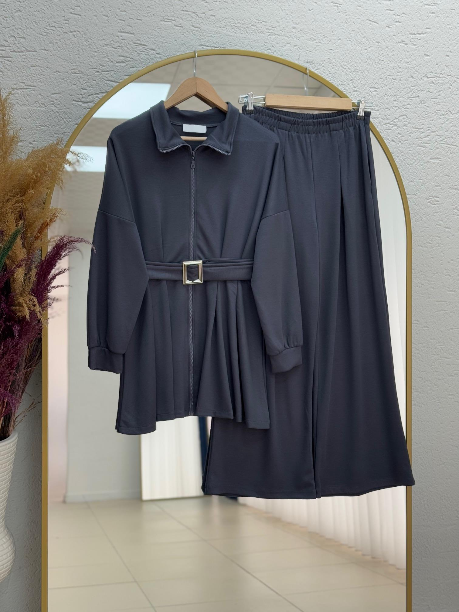 Celesia Fermuarlı Pileli Pantolonlu Takım-MF1825 Antrasit
